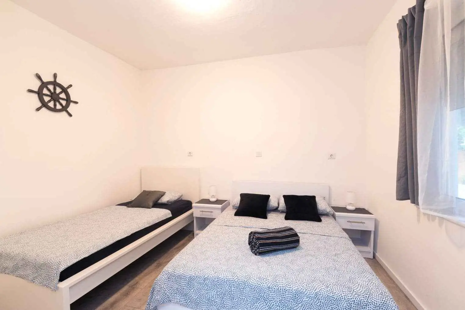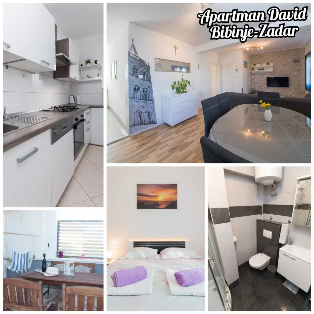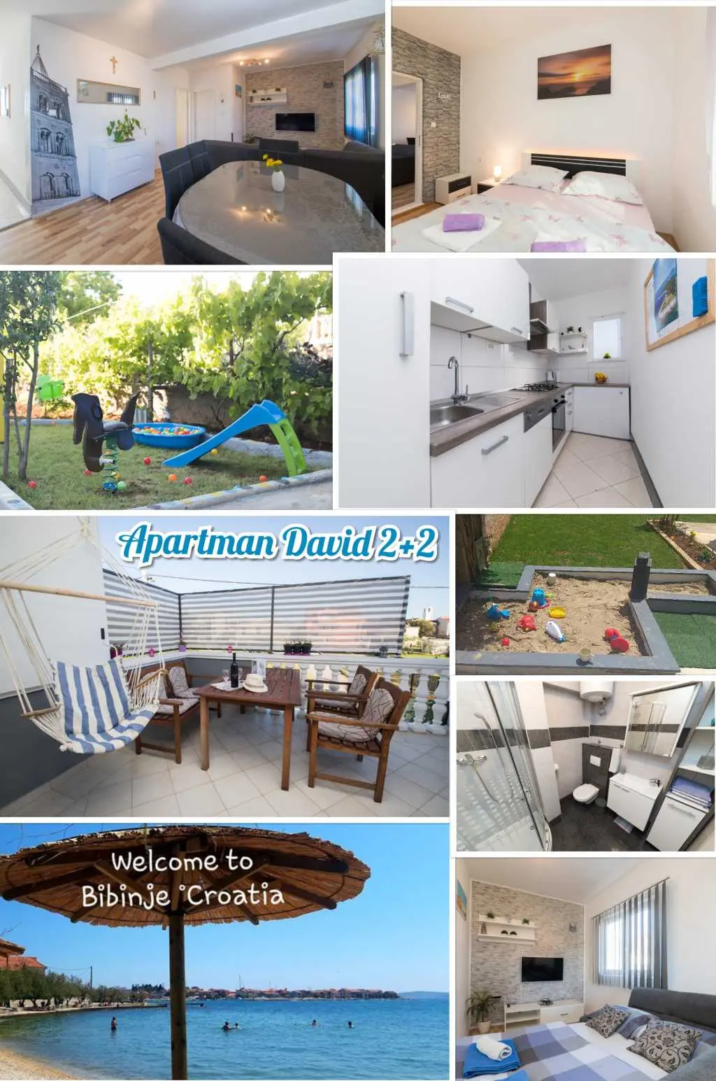 Apartmán David sa nachádza v meste Bibinje, iba 5 km od Zadaru. V byte 2 + 2 sa nachádza kompletne vybavená kuchyňa, kúpeľňa, izba s manželskou posteľou a veľká rozkladacia pohovka v obývacej izbe. Apartmán má súkromnú terasu s výhľadom na more a záhradu s malým detským parkom. K dispozícii je vám bezplatné Wi-Fi pripojenie na internet, parkovisko, TV, klimatizácia a gril. Ideálne pre rodiny s deťmi alebo pre dvoch!