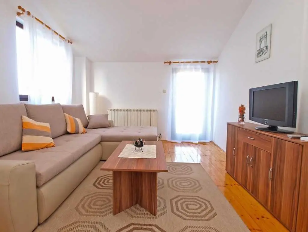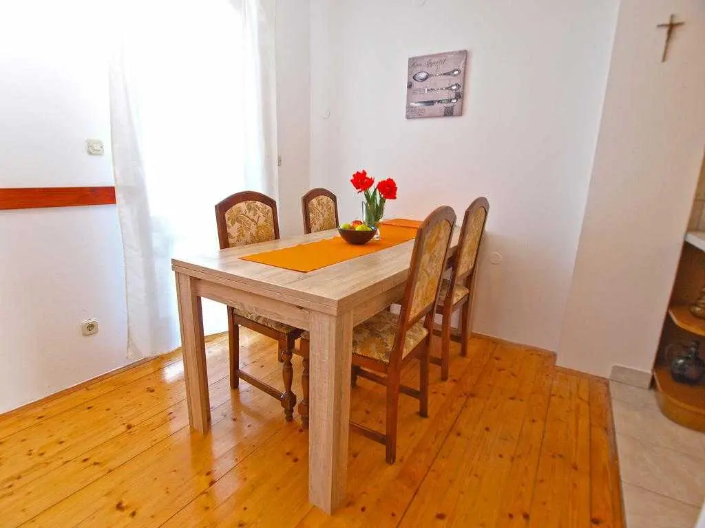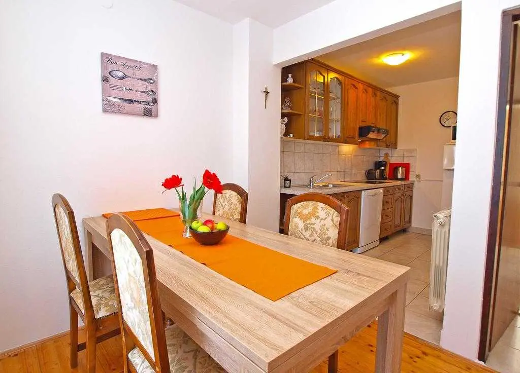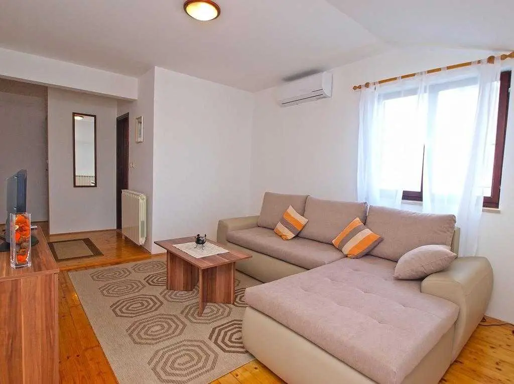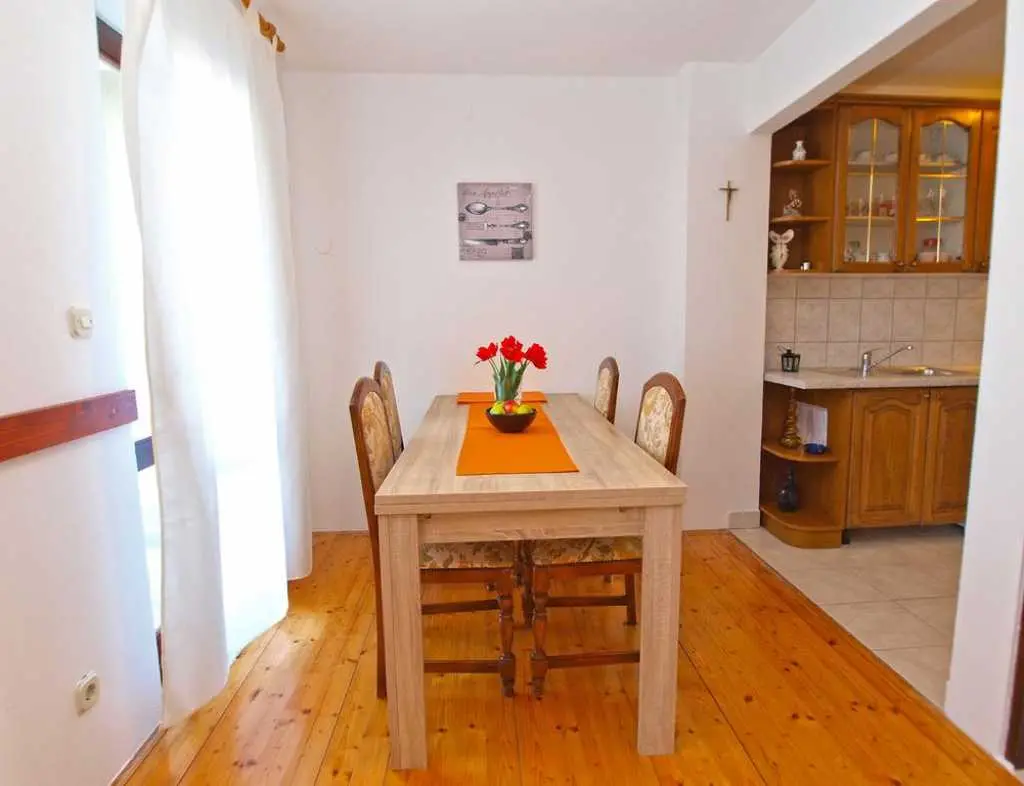 Byt sa nachádza na prvom poschodí s krásnym výhľadom na more. Má 3 spálne, 2 kúpeľne, 3 terasy, z ktorých jedna je 20 m2 podlahovej plochy. K dispozícii je tiež grilovanie a domáce pálenky.