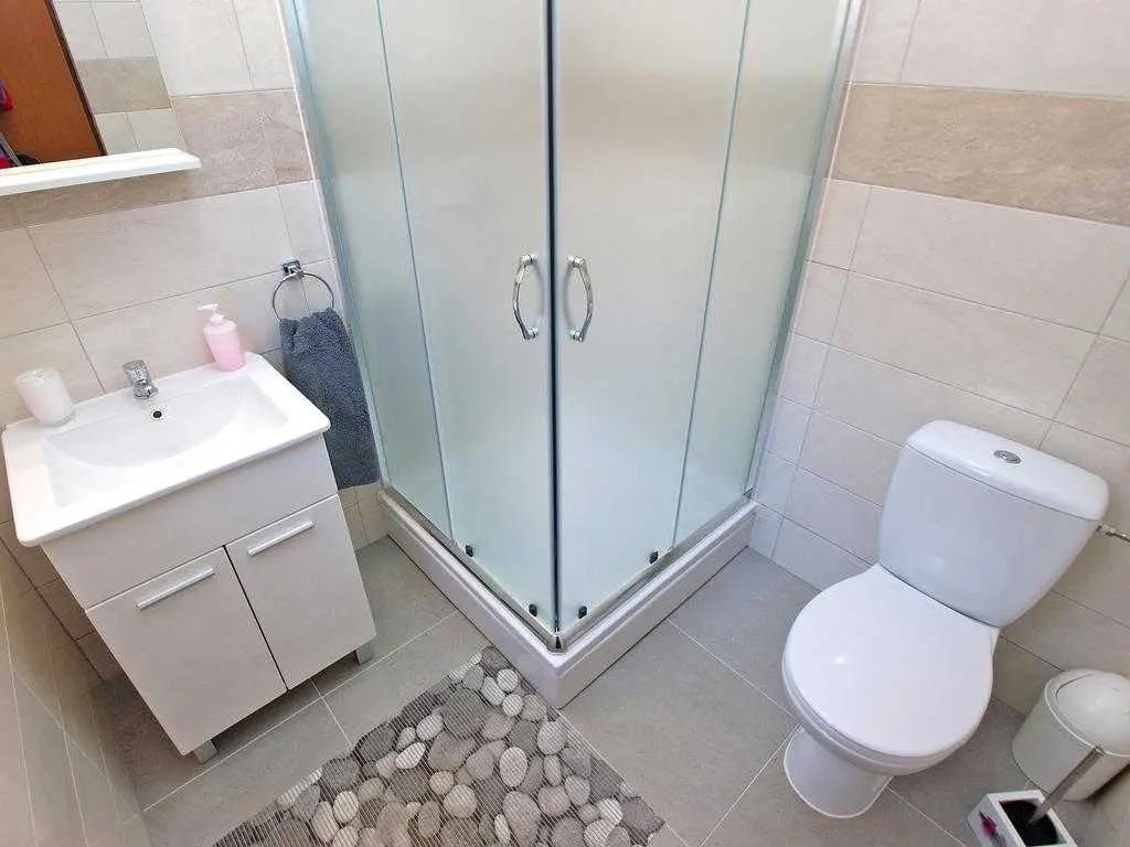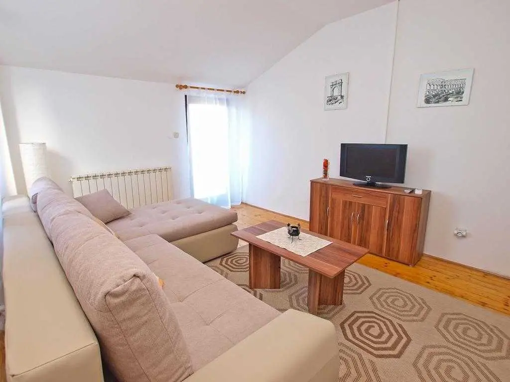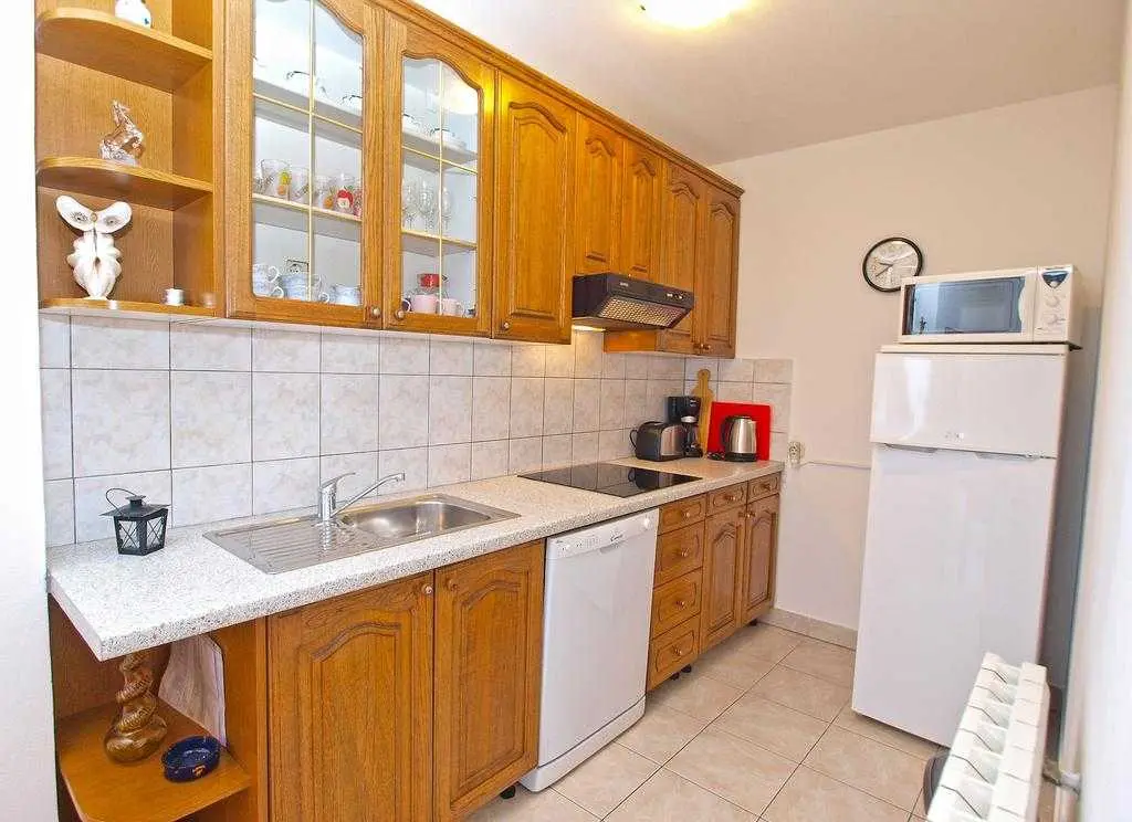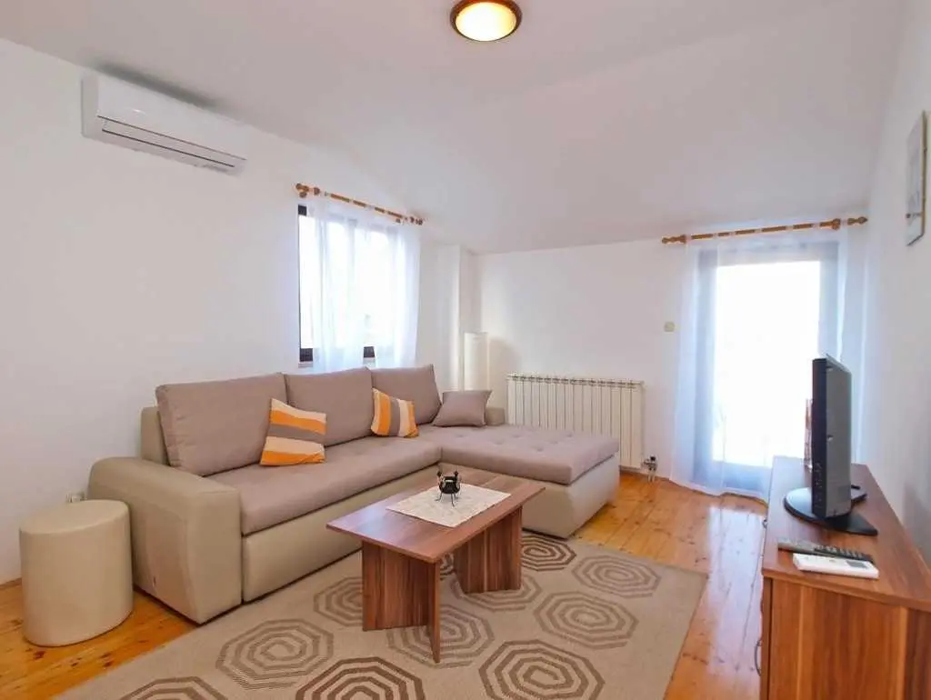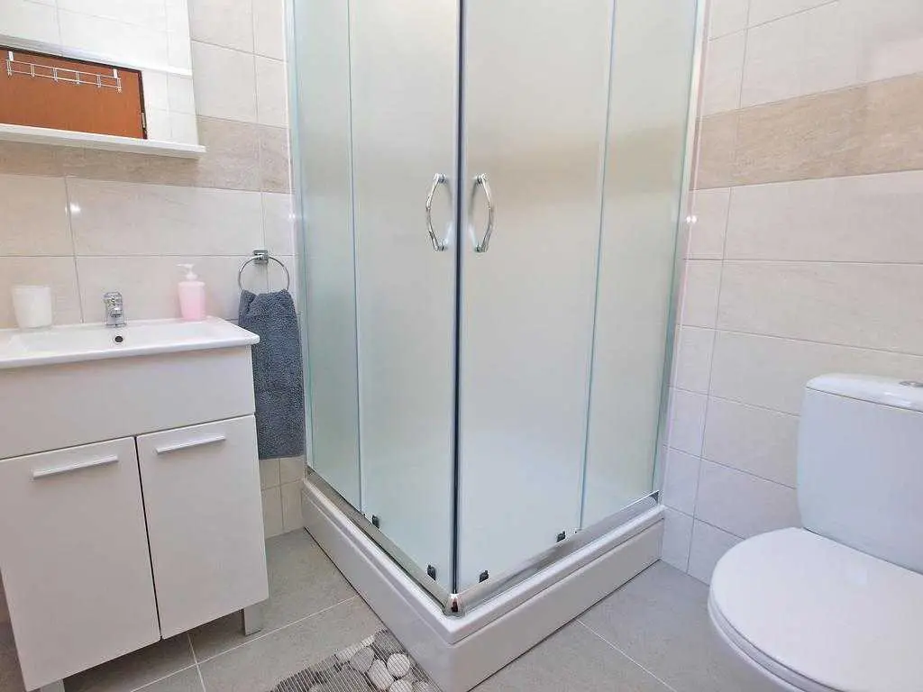Byt sa nachádza na prvom poschodí s krásnym výhľadom na more. Má 3 spálne, 2 kúpeľne, 3 terasy, z ktorých jedna je 20 m2 podlahovej plochy. K dispozícii je tiež grilovanie a domáce pálenky.