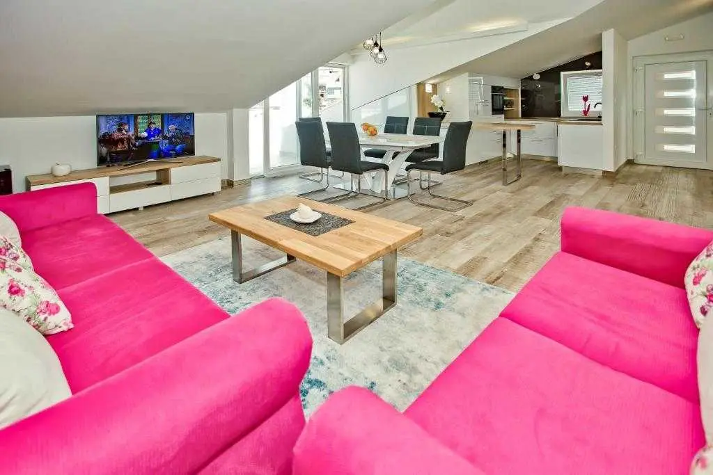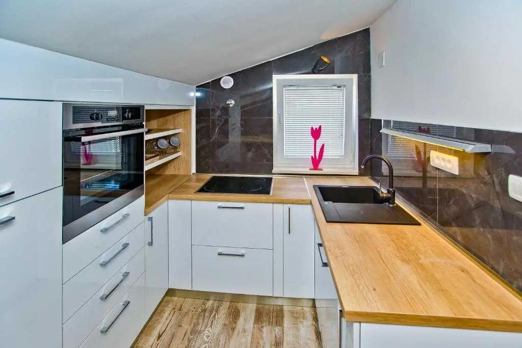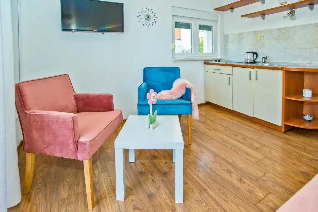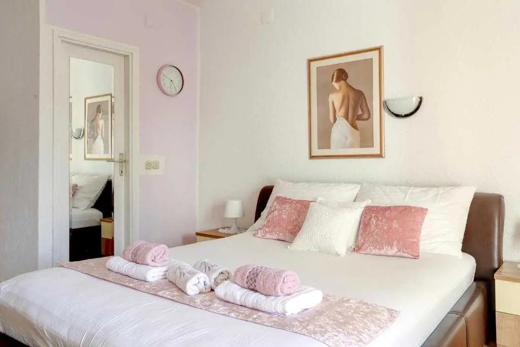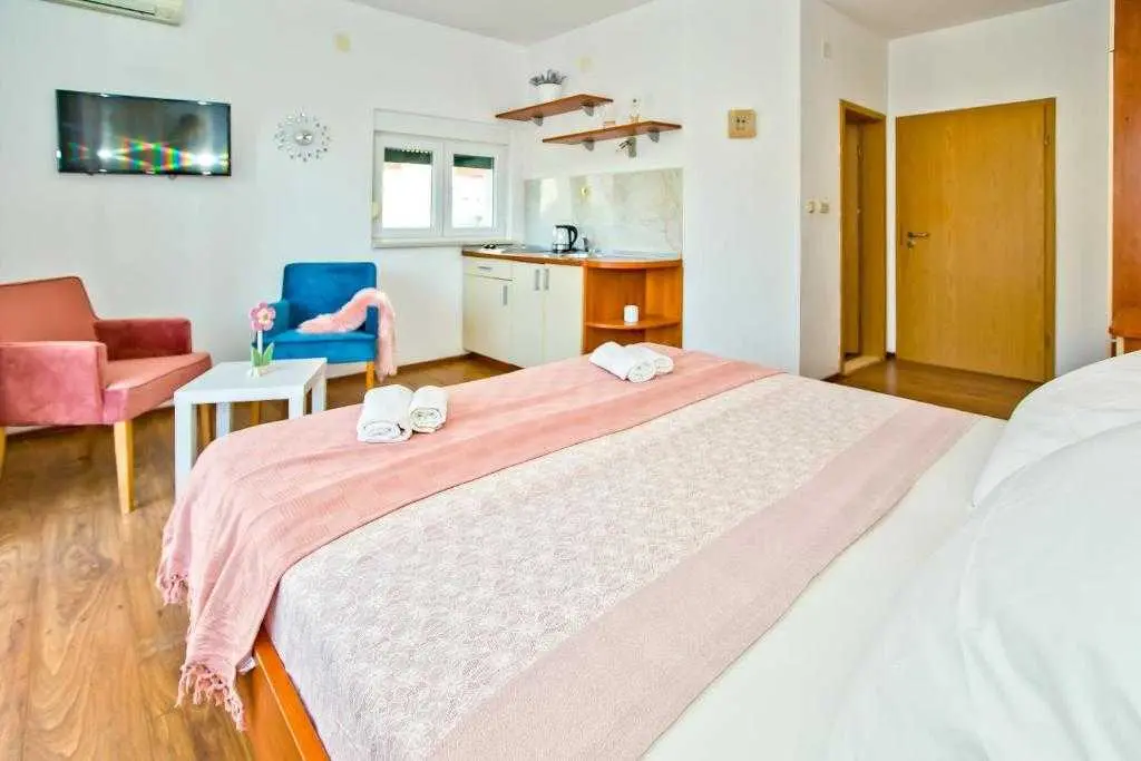 Novopostavený dom sa nachádza v pokojnej časti MESTO. Iba 10 minút chôdze. Prechádzka pozdĺž pobrežia od centra mesta. Vlastné parkovacie miesto. Apartmány sú vzdialené 100 m od obchodu, detských ihrísk, pláže, reštaurácie. Apartmány majú klimatizáciu, TV-SAT, internet
