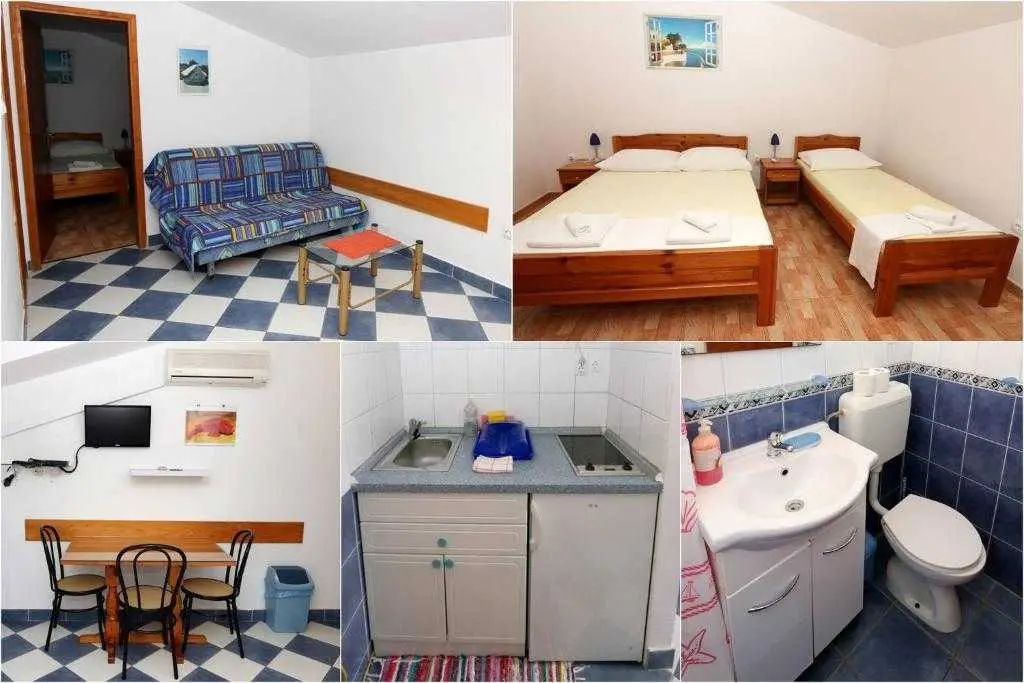 Máme 8 štúdio apartmány pre 2, 4 štúdio apartmány pre 3, 4 apartmány pre 5 osôb. Štúdio apartmány majú +1 prístelku. Všetky majú kuchyňu, kúpeľňu, klimatizáciu, TV, balkón a Wi-Fi. Sućuraj je zaujímavé, pretože to má mnoho cyklistických chodníkov a mnoho Sućuraj je obklopené morom, takže to má veľa pláží a zátok na kúpanie. Vo všetkých zátokách sú prístupné na bicykli a automobilov. Od pevniny, je to len 30 minút jazdy trajektom toľko lacnejšie cesta. Náš dom je od najbližšej pláže je cca 150 m. V obci existuje mnoho turistických lodí, ktoré organizujú výlety s piknikom na okolité ostrovy a na Makarskej riviére, v blízkosti Dubrovníka a Medjugorje tak zaujímavé hostí a prehliadka mesta. Akceptujeme veľké skupiny.