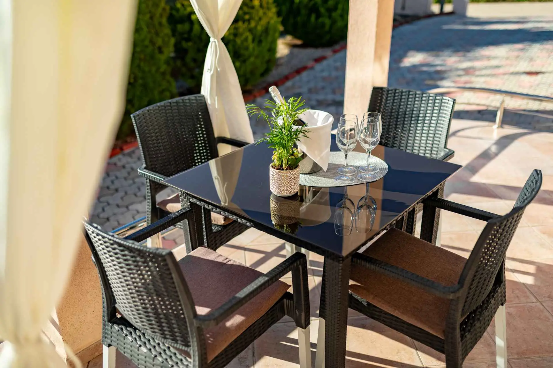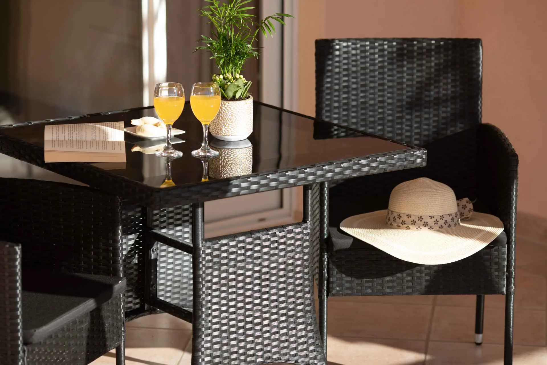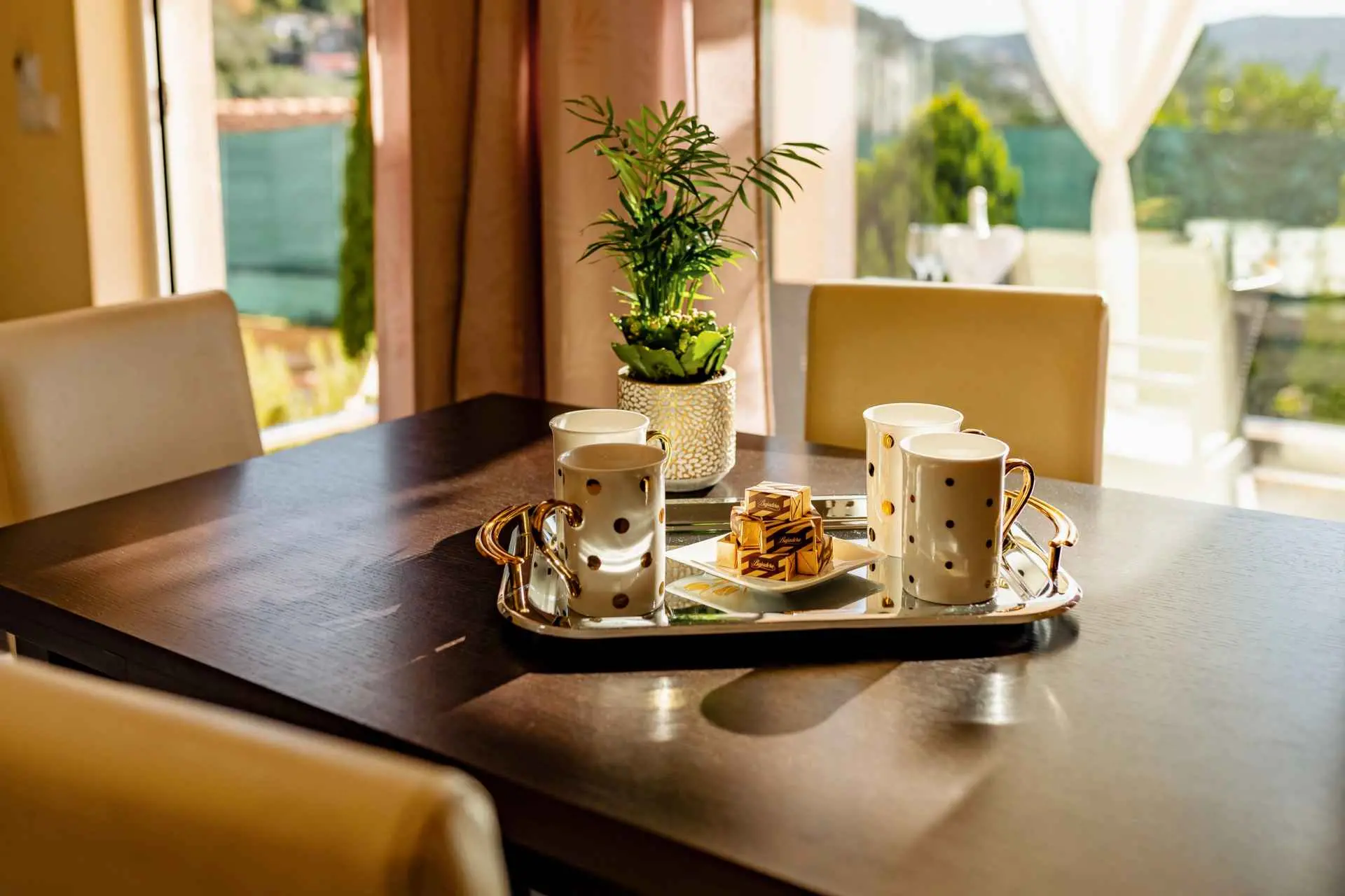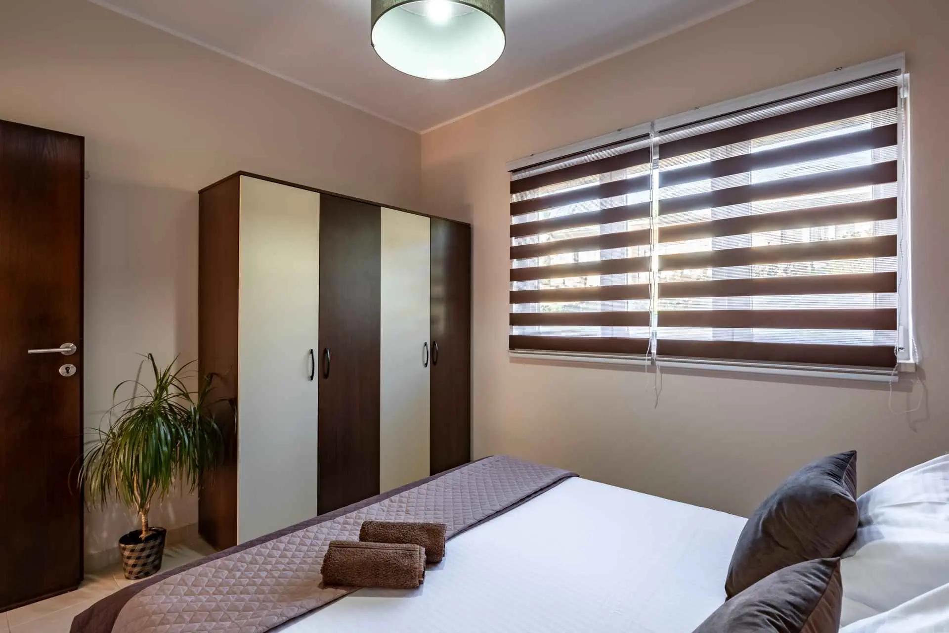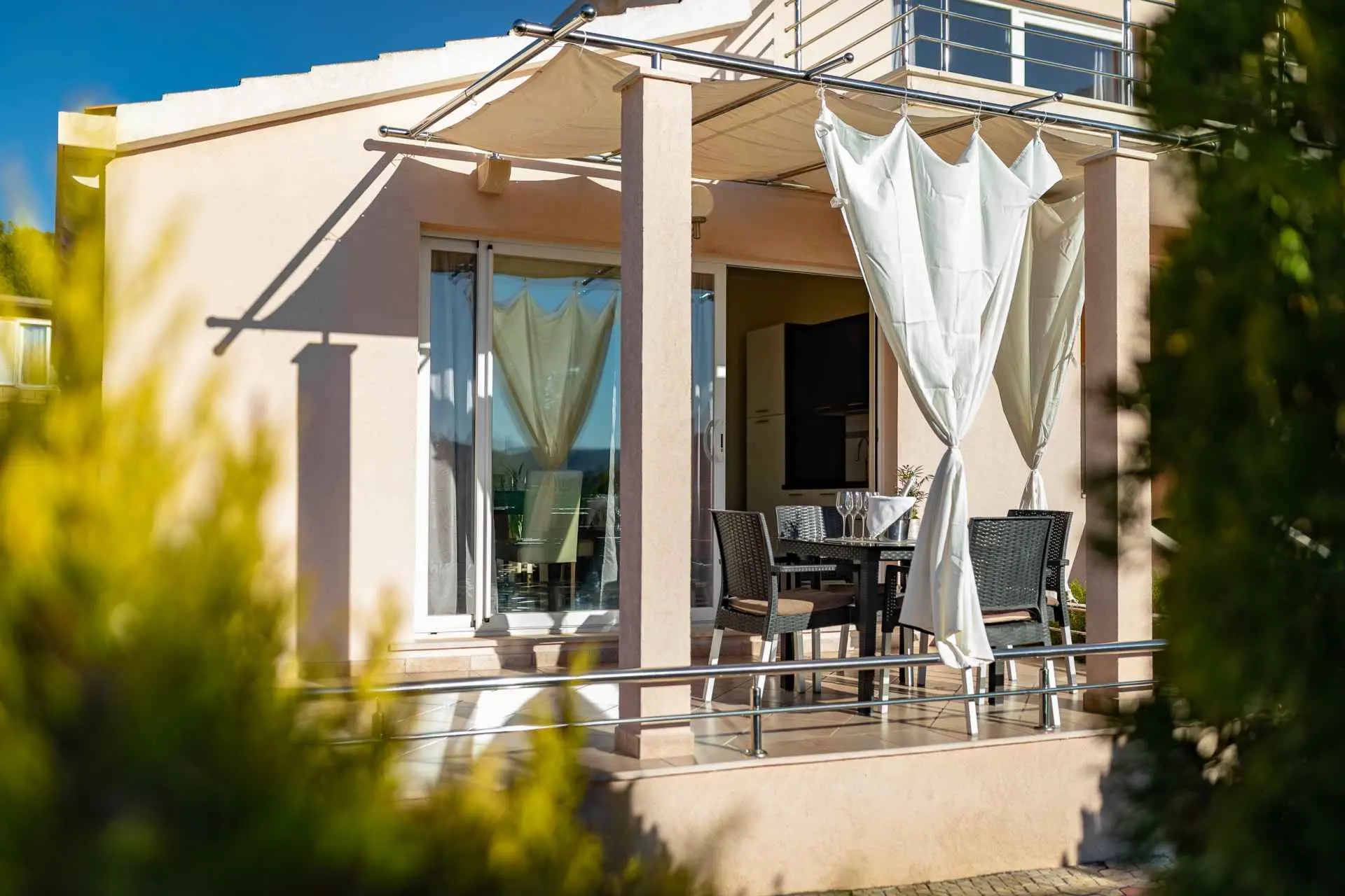 Tento úplne klimatizovaný apartmán o rozlohe 40 m² zaberá ľavú polovicu prízemia vily, ideálnym miestom pre relaxačnú dovolenku s rodinou alebo priateľmi ďaleko od davov turistov, ale v blízkosti všetkého komfortu mesta. Apartmán má svetlý a vzdušný obývací a jedálenský kút s integrovanou plne vybavenou kuchyňou, jednou spálňou a špičkovou modernou kúpeľňou. Obývací priestor je vybavený pohovkou, satelitnou televízorom s plochou obrazovkou s portom USB, rádiom a dreveným jedálenským stolom so štyrmi zodpovedajúcimi stoličkami. Vstavaná kuchyňa je vybavená štvorplatňovým plynovým sporákom, rúrou, štýlovým digestorom z nehrdzavejúcej ocele, veľkou chladničkou s mrazničkou, kávovarom, rýchlovarnou kanvicou a hriankovačom. Spálňa je vyzdobená v limetovo zelenej farebnej schéme, ktorá poskytuje relaxačné a veselé prostredie. Je vybavený manželskou posteľou 160 cm x 200 cm a šatníkom, ktorý poskytuje dostatok úložného priestoru pre vaše oblečenie a batožinu. Pohovka v obývacej izbe je možné premeniť na ďalšie dvojlôžko 160 cm x 200 cm, ktoré ponúka ďalšie miesto na spanie pre dve ďalšie osoby. Biele dlaždicové steny a čierna kachľová podlaha v kombinácii s prvotriednym príslušenstvom a príslušenstvom dávajú kúpeľňu kúpeľný pocit.