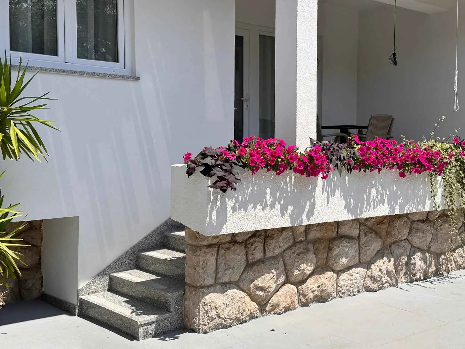 Apartmány Fioribell sa nachádzajú v Baške v tichej časti obklopenej stredomorskou zeleňou v ideálnej vzdialenosti len 50 metrov od Vela plaža, najznámejšej pláže na ostrove, na ktorú môžete ísť len v plavkách s uterákom. Centrum je vzdialené 100-200 m, kde nájdete všetko potrebné vybavenie po ceste. Našou špecialitou je, že sme v rovinatej časti Bašky, v blízkosti všetkej občianskej vybavenosti, s veľkou oplotenou záhradnou terasou ideálnou pre deti na hranie alebo leňošenie v tieni. Na terase je veľký gril s terasou pre všetkých svojich hostí. Všetky apartmány majú samostatné vchody, terasu alebo balkón a sú plne vybavené. Hostia majú k dispozícii bezplatné súkromné parkovisko pred domom. Našim hosťom ponúkame možnosť prenajať si loď v našej rodinnej spoločnosti, na nezabudnuteľné chvíle pri spoznávaní krásnych pláží a miest v okolí. Vážení hostia, strávite u nás pohodovú dovolenku. Vitajte...
