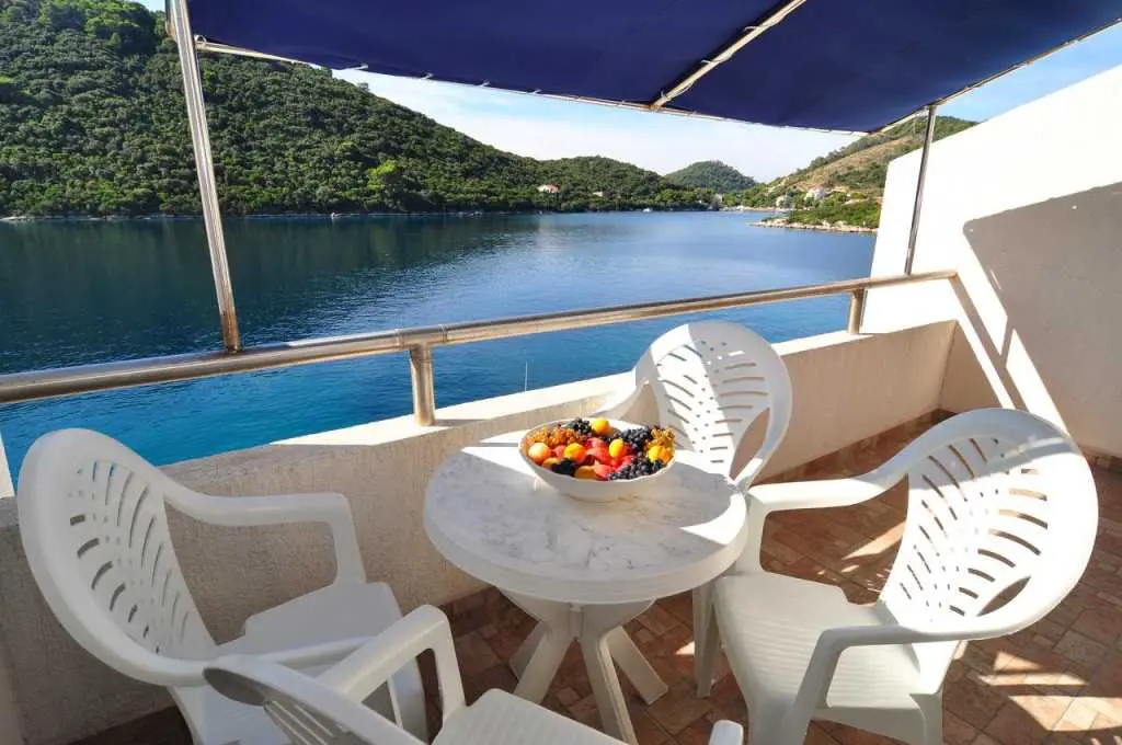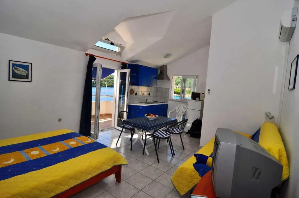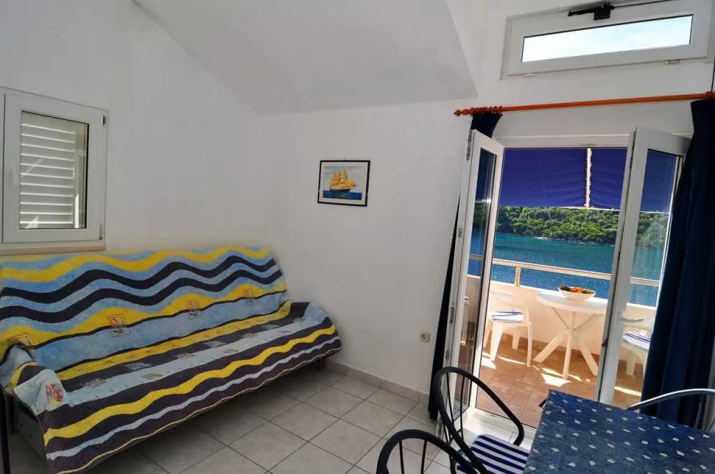 Apartmány Livia sa nachádza priamo pri mori s balkónom s výhľadom na more. Na pobreží v prednej časti bytov, s malými dokov je 5 metrov. K dispozícii je parkovacie miesto v prednej časti apartmánov. Apartmány sú umiestnené na prvom poschodí. Apartmány sú vybavené výhradne! Môžete použiť gril von a vyskúšať varenie miestnych a ďalších jedál. Okrem grilu je tabuľka pre tento účel na terase.