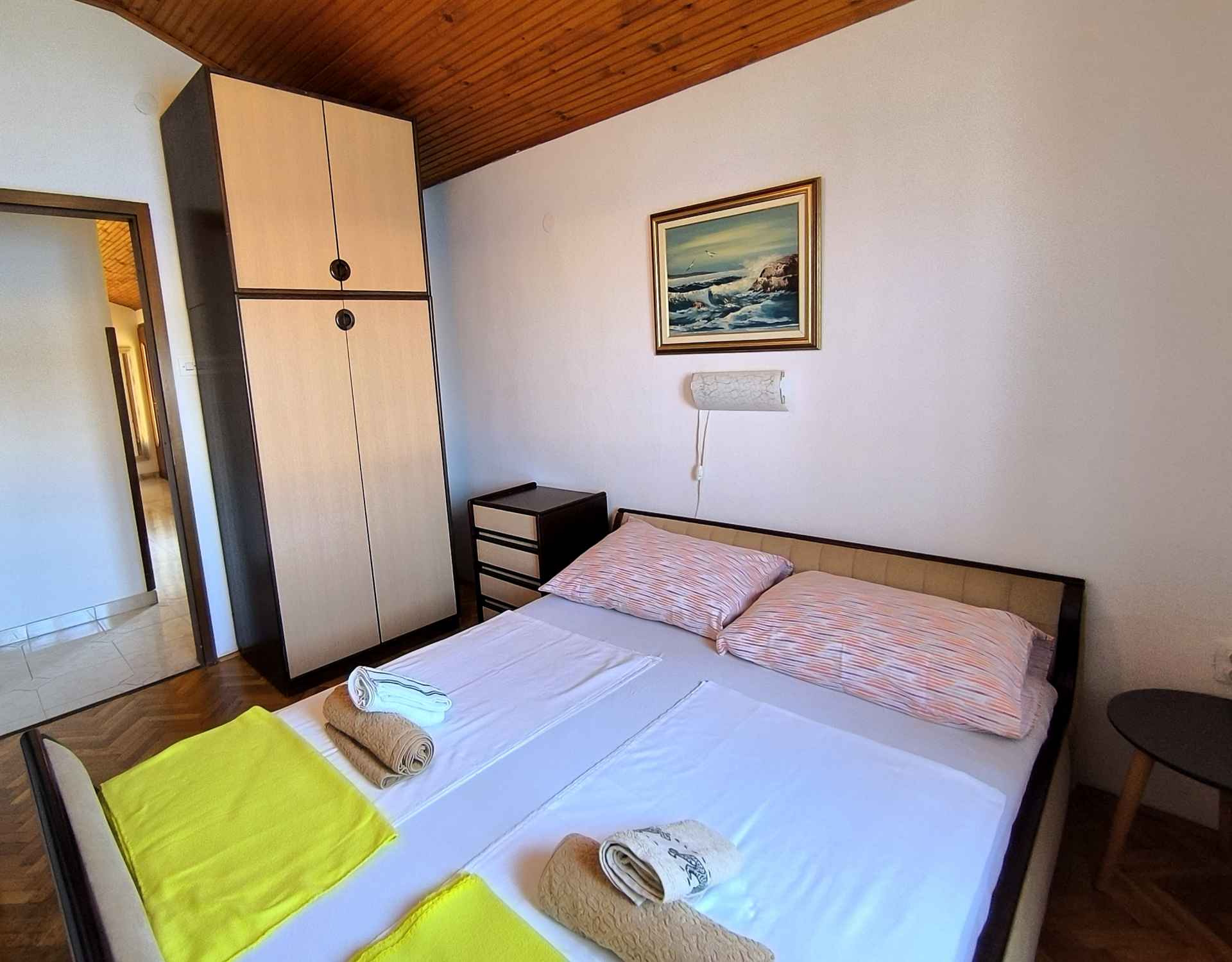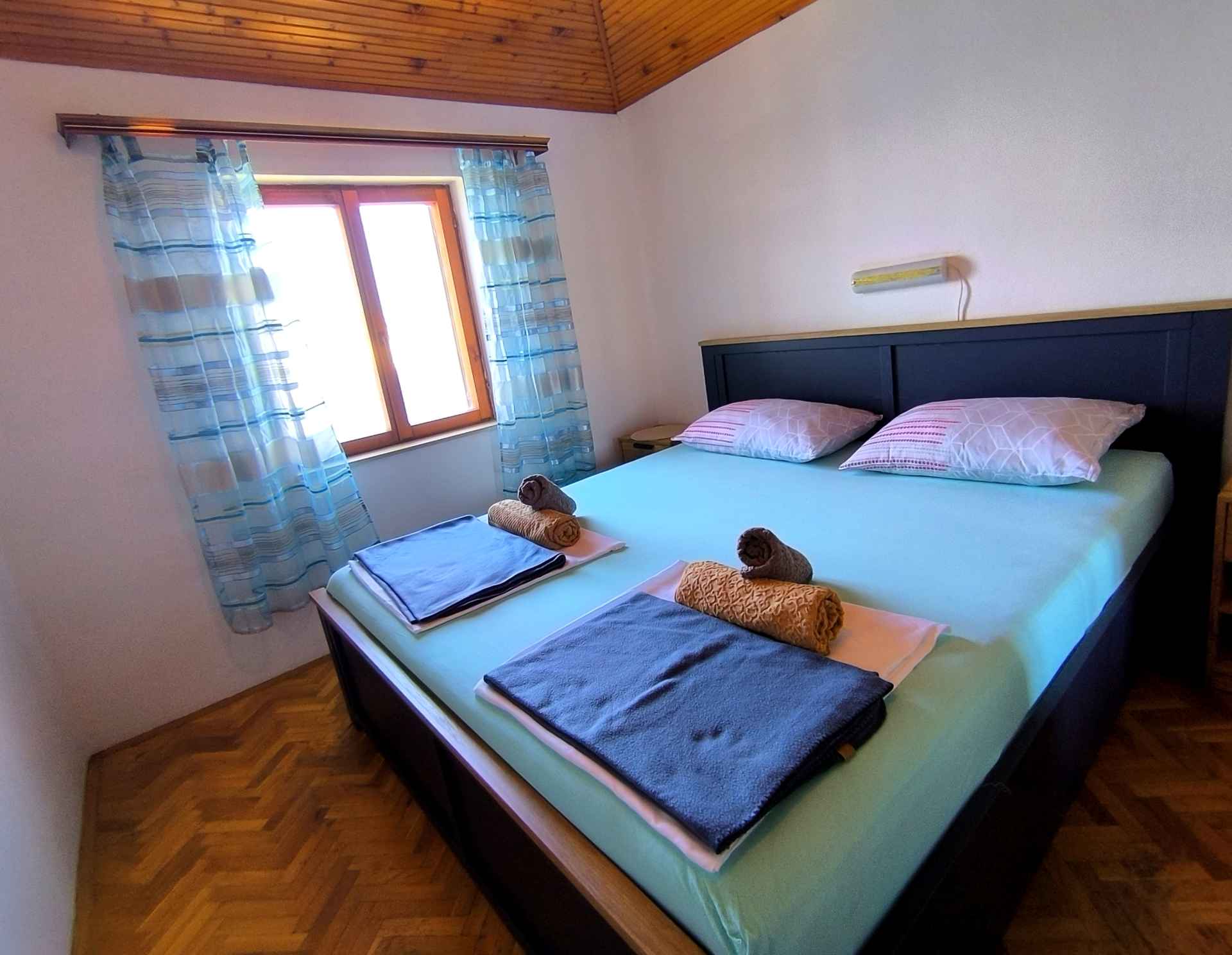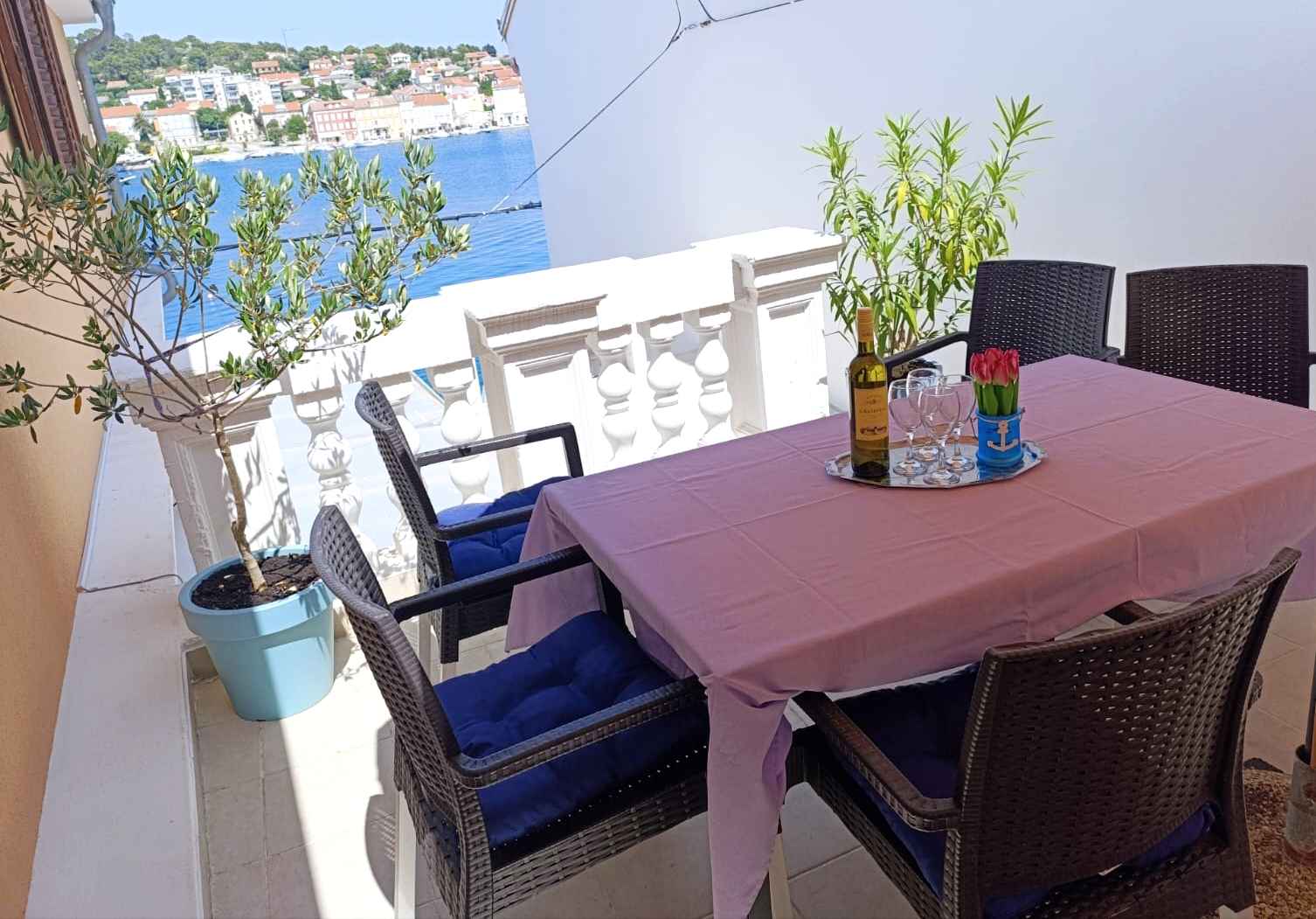 Apartmán s krásnym výhľadom na more Chceli by ste stráviť dovolenku v apartmáne, ktorý vám ponúka výhľad na more z vašej postele? Navštívte nás kedykoľvek počas roka na najslnečnejšom chorvátskom ostrove! Náš apartmán je priestranný, svetlý a krásne zariadený. Ohromí vás svojou veľkosťou a komfortom. Pozostáva z troch spální, kuchyne s jedálňou, veľkej kúpeľne a priestrannej chodby. Svoj čas môžete pohodlne stráviť aj na slnečnej terase s výhľadom na more a mesto, ktorá poskytuje túžbu po večernom osviežení. K dispozícii je bezplatná klimatizácia a rezervované parkovacie miesto. Máme kotvisko pre loď, prístup na internet a možnosť prenájmu bicykla za rozumnú cenu. Apartmán sa nachádza na prvom poschodí rodinného domu, má samostatný vchod a úplné súkromie. Nachádzame sa v tichej oblasti, pri mori, ale od centra sme vzdialení len pár minút ľahkej chôdze. Na najbližšiu pláž sa dostanete pešo asi za desať minút a môžete si vychutnať krištáľovo čisté more, ale aj tieň storočných borovíc.