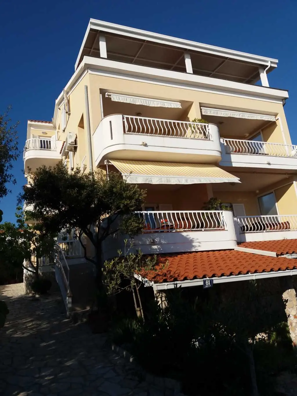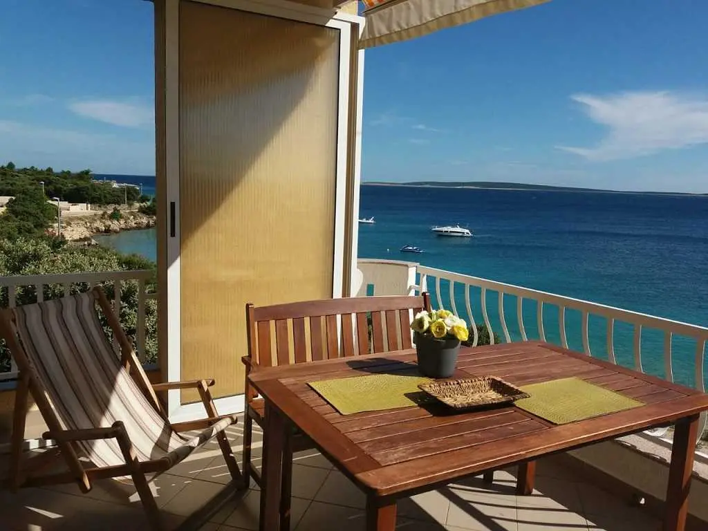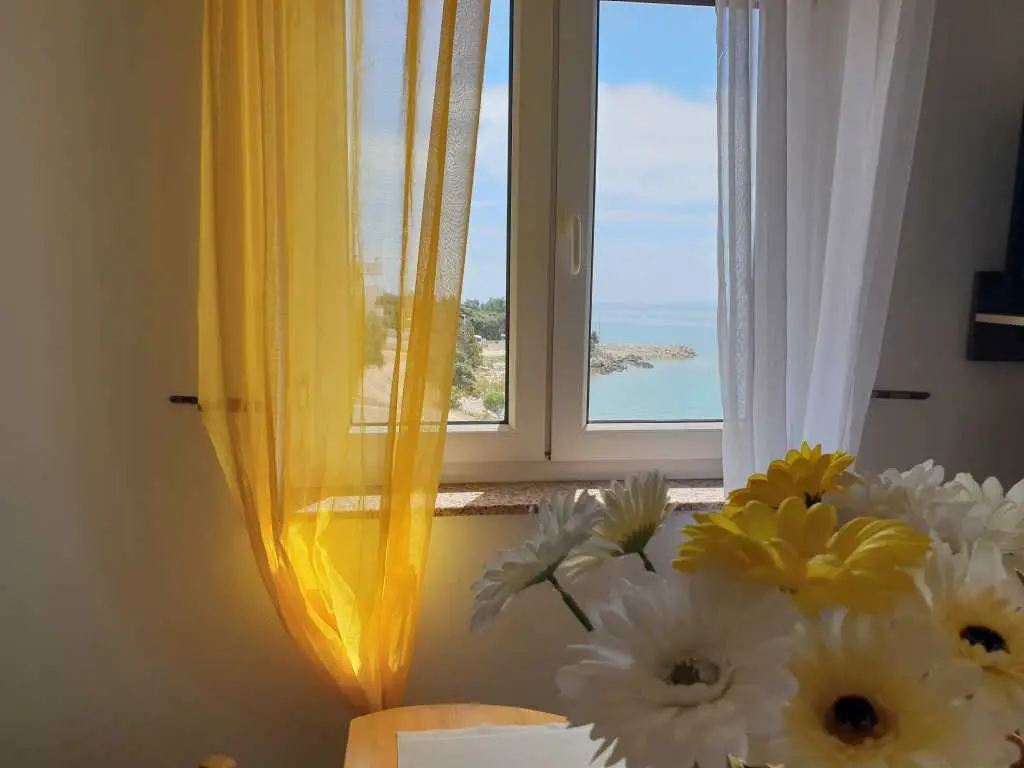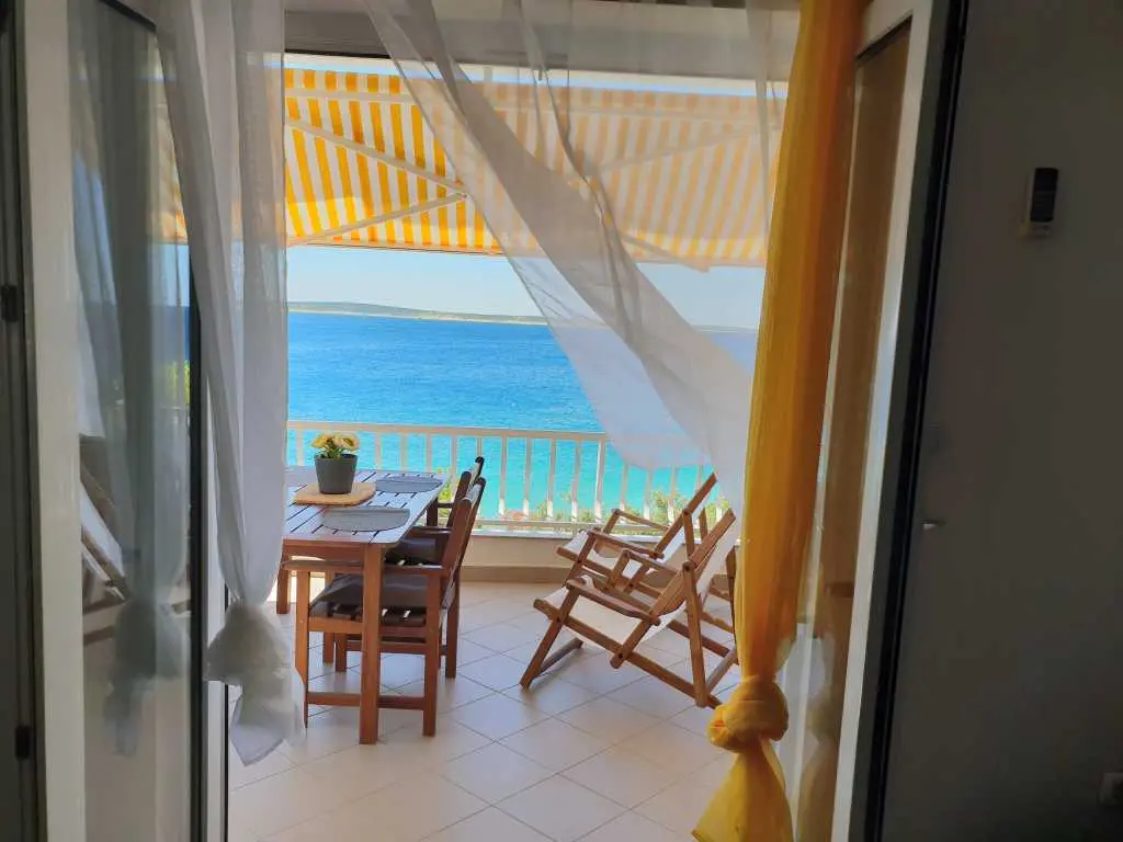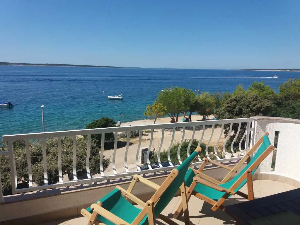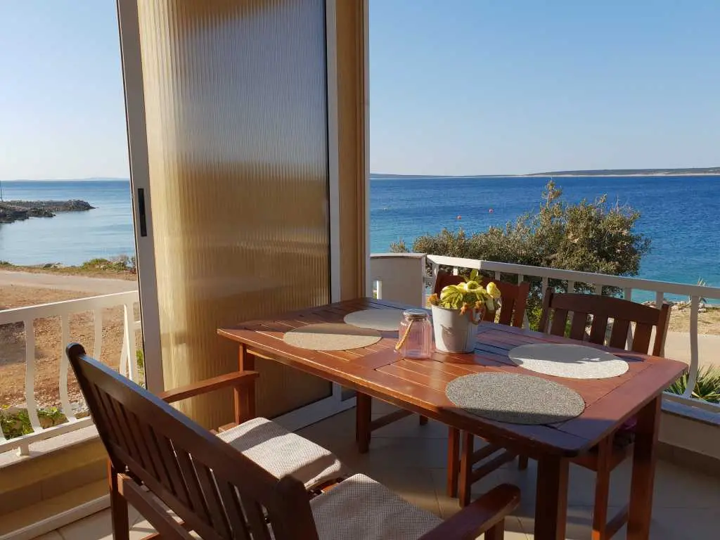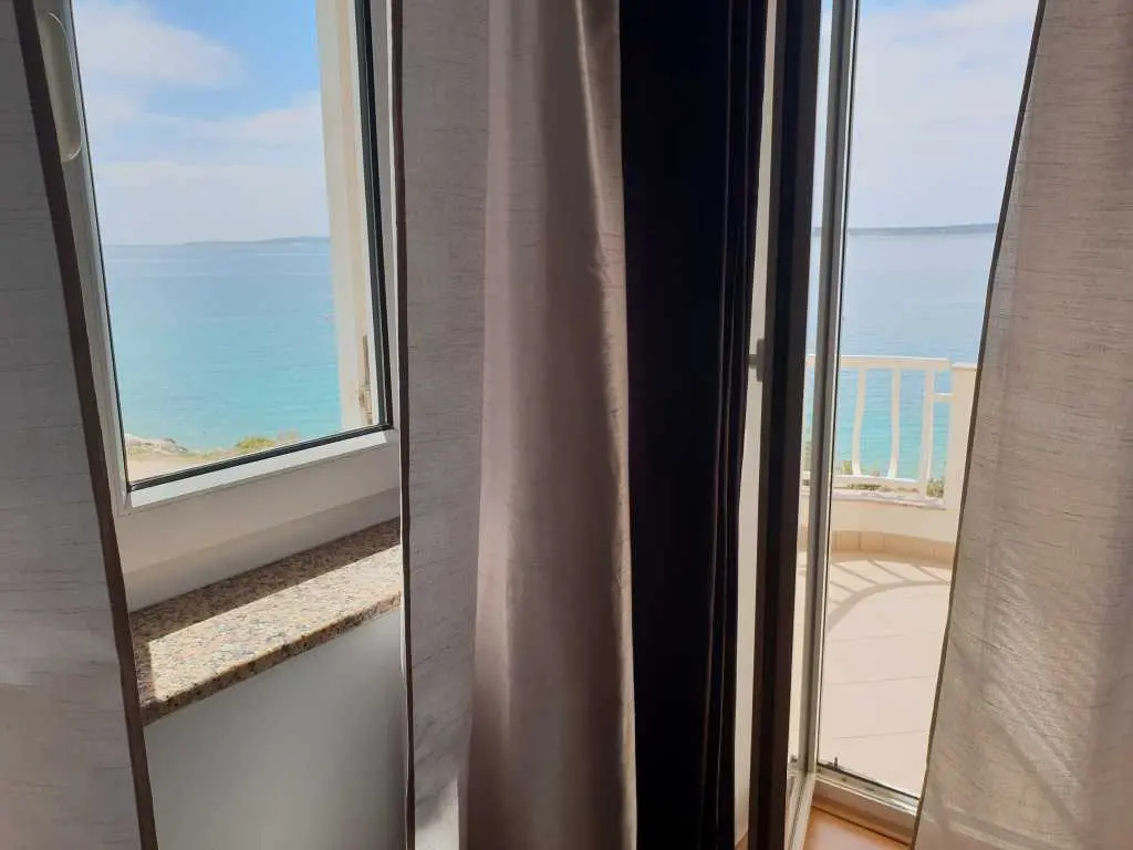 Apartmány sa nachádzajú 20 metrov od pláže a každý apartmán má krásny výhľad na more a susedné ostrovy. Apartmán má spálňu, kúpeľňu, kuchyňu s obývačkou, kde je posteľ pre ďalšie dve osoby, takže v každom apartmáne sa môžu ubytovať 4 osoby. Každý apartmán má priestrannú terasu (12 m2) a balkón (4 m2). Je ideálny pre rodiny s deťmi alebo páry, pretože apartmány sú priestranné a veľmi pohodlné. Pred domom je parkovisko a pláž. Sme 500 metrov od centra, takže tu nie je žiadny hluk ani veľká premávka.