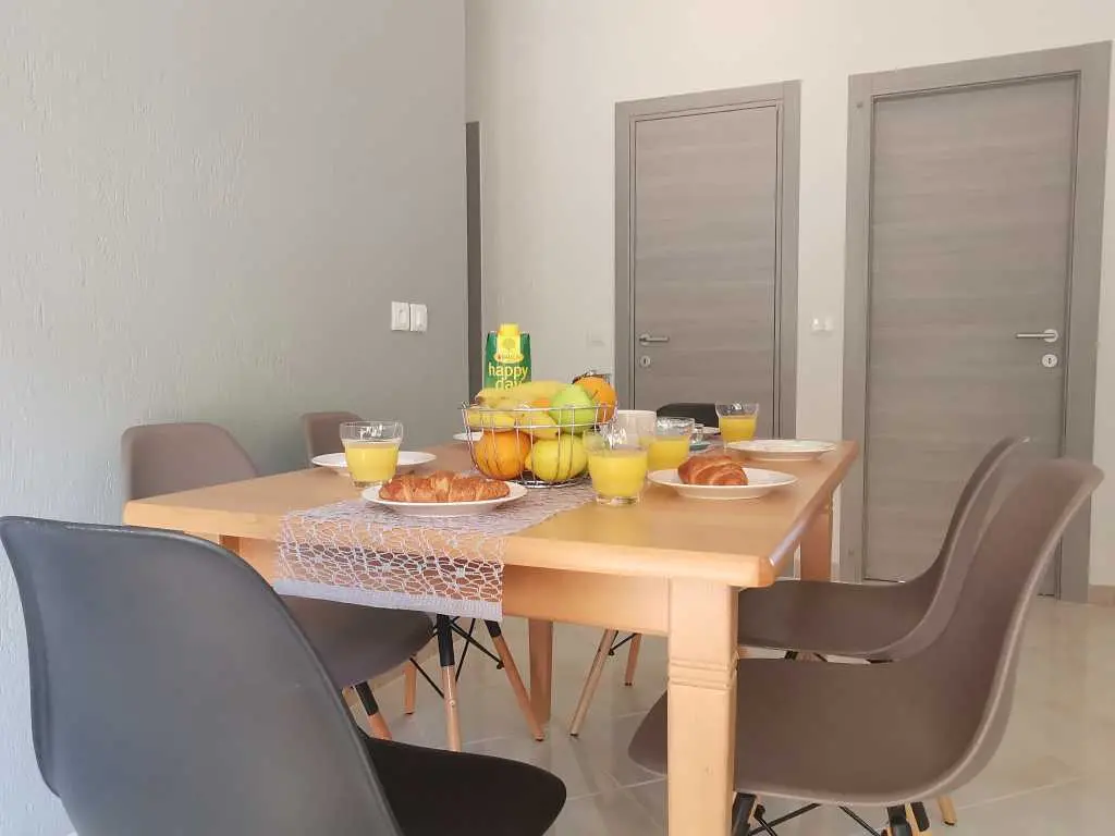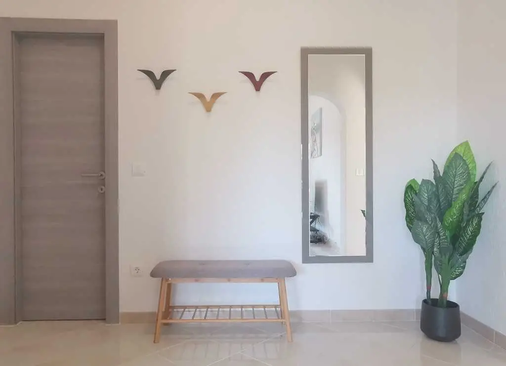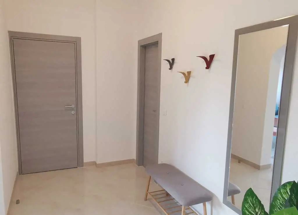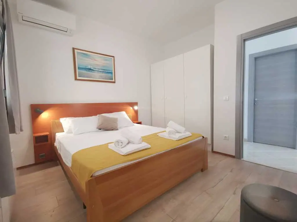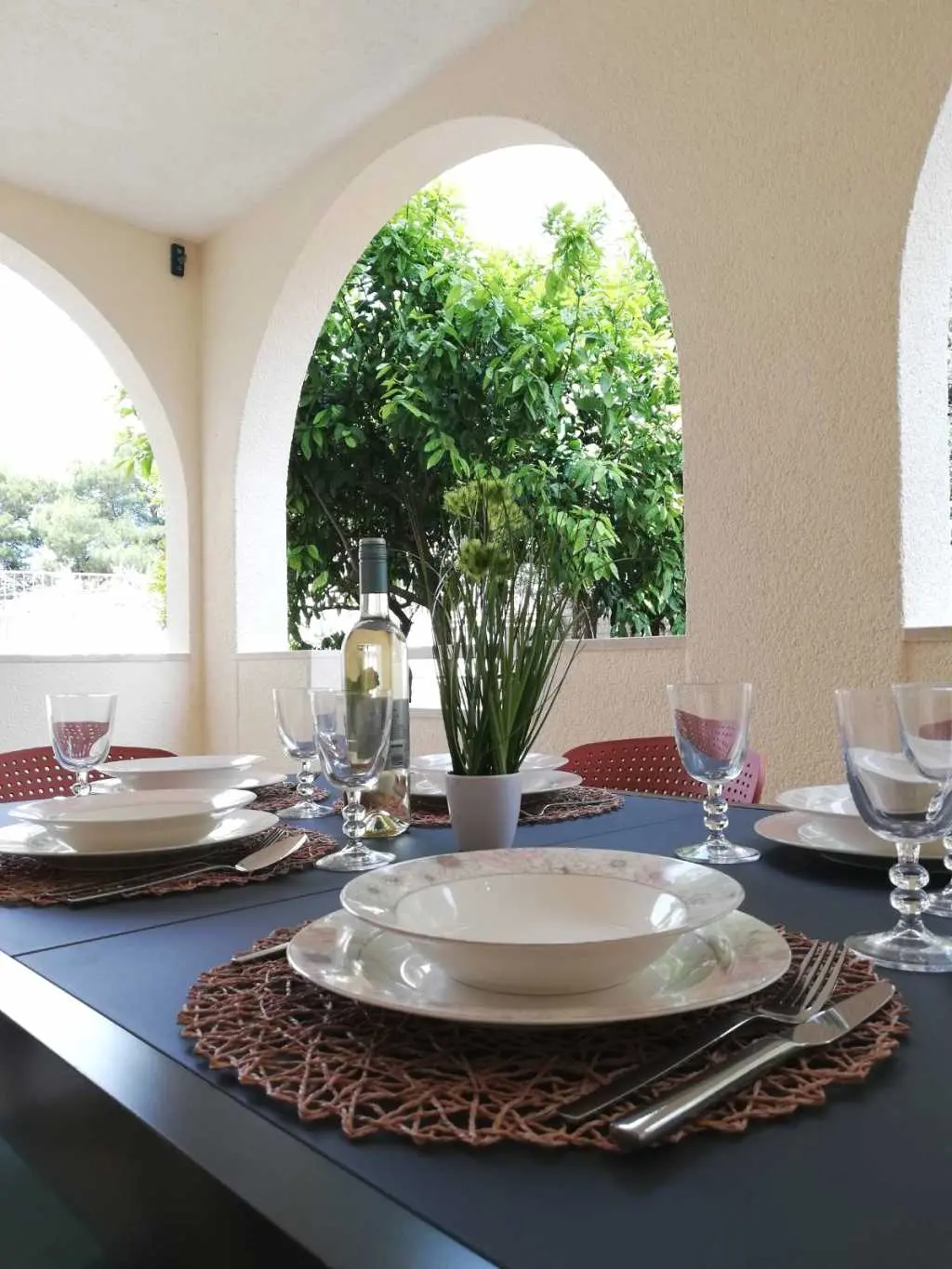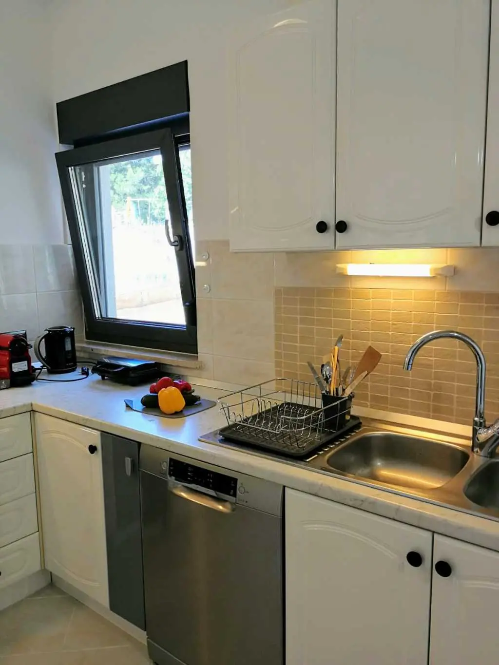 4-hviezdičkový apartmán, novo zariadený, s krásnou terasou s výhľadom na lesy, kde si môžete vychutnať raňajky, obed alebo kávu. Nachádza sa vo výbornej lokalite v tichej ulici a zároveň v tesnej blízkosti mesta (do mesta 2 minúty autom alebo 10 minút pešo). Byt sa nachádza v súkromnom dome, na prízemí. Má cca 100m2, obsahuje veľkú obývaciu izbu (rozkladací gauč 160*190), 2 spálne (1 lôžko 180*200, 1 lôžko 160*190), jedáleň, kúpeľňu (s priestranným sprchovým kútom), WC, chodbu, balkón a veľká terasa s výhľadom na lesík. Byt je vybavený moskytiérou, wifi zdarma, klimatizáciou v obývačke, TV s plochou obrazovkou, práčkou, žehličkou, chladničkou, umývačkou riadu, kávovarom, rýchlovarnou kanvicou, mikrovlnnou rúrou, rúrou, hriankovačom, fénom na vlasy, trezorom na cennosti a bezpečný na kľúče. Okrem iného je byt vybavený úplne novou posteľnou bielizňou, uterákmi a riadom. Aréna Pula je vzdialená 1,3 km a Kaštel Pula 1,4 km. Tiež veľmi blízko (0,500 km -1 km) sa nachádza trh so zeleninou, nemocnica, nákupné centrum Pula City Mall (McDonalds), Lidl, Plodine, Interspar a čerpacia stanica. Odporúčame výbornú pizzeriu Peperoncino, ktorá sa nachádza veľmi blízko a reštauráciu Alighieri v centre mesta. Každému z našich hostí dávame vodu, džús, víno, kávu, čaj, čistiace a hygienické prostriedky. Parkovanie je bezplatné a nachádza sa pred domom. Tešíme sa na váš príchod!