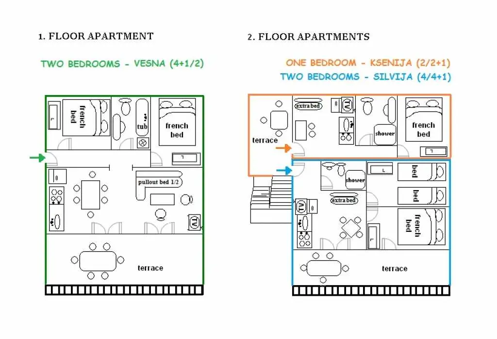 Hľadáte relaxačný oddych ďaleko od zhonu a preplnených pláží? Ak áno, potom sú pre vás ideálne apartmány v Kalebova Luka v Rogoznici. Oddýchnite si od každodenného života v malom rybárskom prístave, ktorý sa nachádza len 70 metrov od pláže a za veľmi priaznivé ceny. Apartmány Vesna ponúkajú ubytovanie v 3 apartmánoch - 2 dvojizbové apartmány VESNA (4+1/2) a SILVIJA (4/4+1) plus jednoizbový apartmán KSENIJA (2/2+1). Všetky apartmány sú klimatizované a okrem spální a kúpeľní majú obývaciu izbu s kuchyňou a krytú terasu s výhľadom na more. Ceny apartmánov zahŕňajú: pobytovú taxu, SATTV, internet WiFi, klimatizáciu, posteľnú bielizeň a osušky, využitie vonkajšieho grilu, súkromné parkovisko vo dvore.