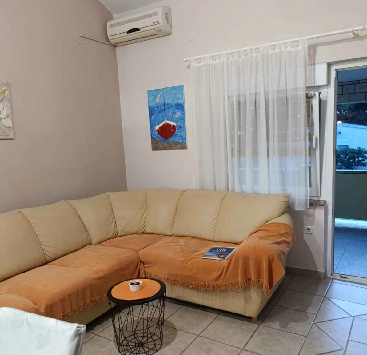 VIR - prenajatý apartmán, klimatizovaný, plne zariadený, pozostáva z: - dvoch izieb, jedna s manželskou posteľou, druhá s dvoma samostatnými lôžkami, ktoré sú spojené. veľká obývacia izba, s gaučom, TV, - plne vybavená kuchyňa, kúpeľňa so sprchovacím kútom, - veľká terasa a gril. Parkovacie miesto pred bytom. Apartmány sú na severnej strane ostrova Vir s výhľadom na ostrov Pag a Velebit, 150 m od mora. Pláž je kamienková, v blízkosti piesočnatých detí, kde je kaviareň a kiosk s pekárskymi výrobkami. do obchodu je to 100 m a hlavné nákupné centrá 1000 m. Do centra Vira je to 1500 m. Byt sa nachádza v tichej lokalite, na ulici, žiadna premávka okrem nájomníkov. V cene nie je zahrnutá daň. Osoby vo veku 12-18 rokov sú 3 kn, dospelí 6 kn/deň. Všetky informácie na mobil: +385 98 929 1993