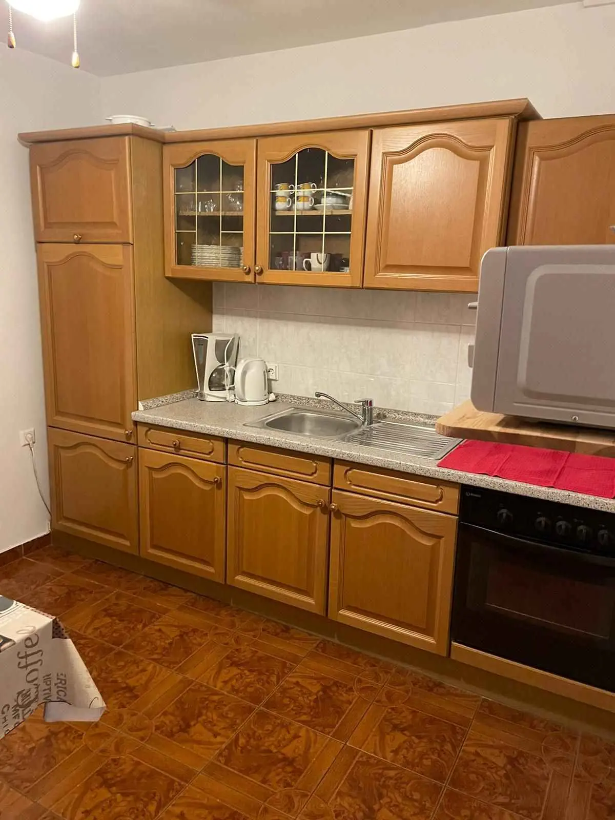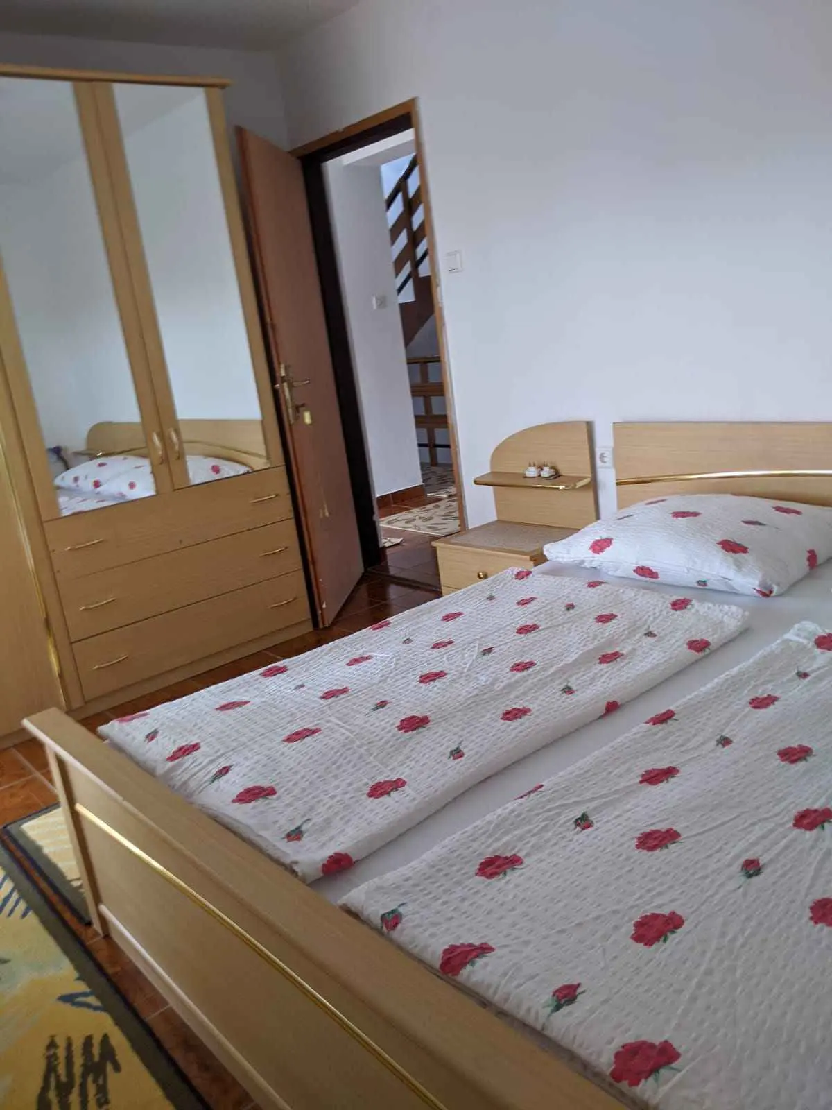 Dom s 2 veľkými bytmi na prenájom. Každý apartmán je určený pre 4 - 7 osôb. Každý apartmán má 3 spálne, obývaciu izbu, kuchyňu, kúpeľňu s 2 sprchovacími kútmi, 2 umývadlami, WC + samostatné WC a veľkú krytú terasu s výhľadom na juh. 1 apartmán má terasu s výhľadom na more. Apartmány sú plne vybavené. Vo dvore je vonkajšia sprcha, gril a veľké parkovisko.
