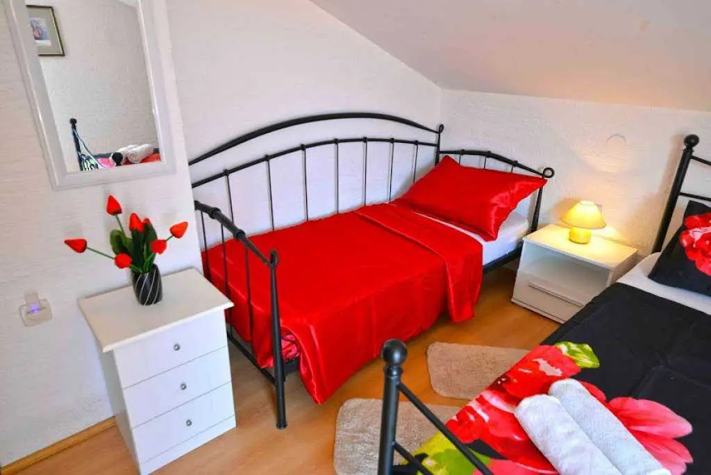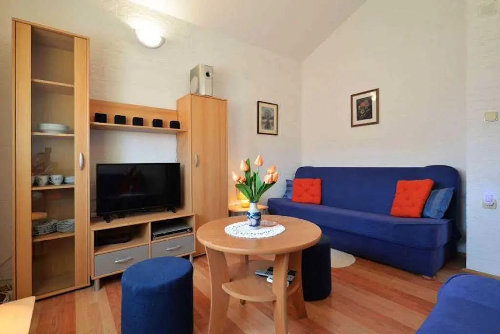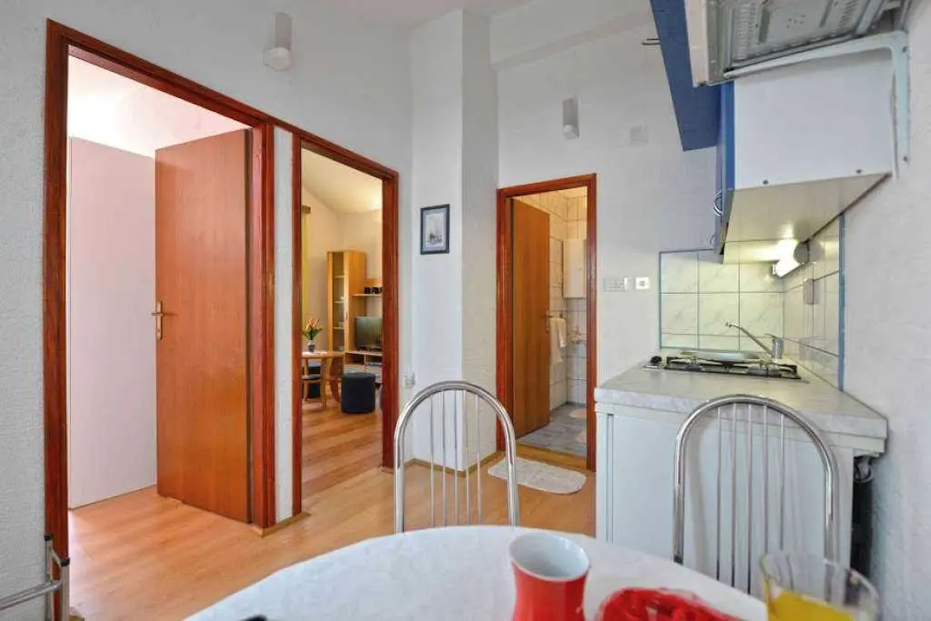Apartmány Andrea sa nachádzajú v pokojnej časti mesta Vodice, 50 km od letiska Split a 40 km od letiska Zadar. Apartmány sa nachádzajú 800 metrov od centra Vodíc a 400 metrov od pláže s hotelmi Miramare, Imperial a Olimpija. Apartmány sú nové a plne vybavené pre váš príjemný pobyt, rozdelené do kategórií s 3 hviezdičkami 2 a 2. Rozloha jedného bytu je 40 m2 a plocha druhého bytu je 43 m2. Obidve izby pozostávajú z obývacej izby, spálne, plne vybavenej kuchyne, kúpeľne a balkóna. V každom apartmáne je klimatizácia, TV a DVD prehrávač. Každý apartmán má WiFi a parkovacie miesto.