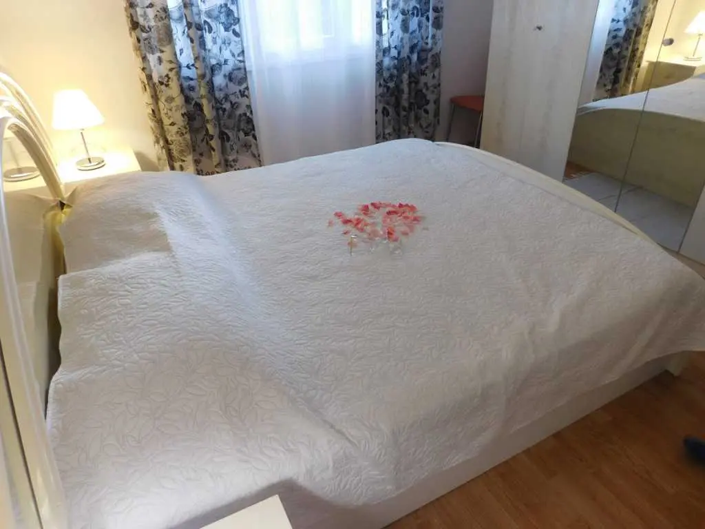Byt sa nachádza na najkrajšej lokalite v Zadare, v blízkosti všetkých základných zariadení. Na pokojnom mieste bez hluku a ďaleko od centra mesta pešo len za 15 minút. Od slávneho pozdravu je slnko a morské varhany vzdialené 15 minút chôdze. Nájomné v období od 01.05.-01.10. - Od pláže, kde sú rôzne športové aktivity, ako je plážový volejbal, 100 m (piesočnatá, kamienková a kamenná pláž) - Kaviarne, pizzerie a cukrárne sú tiež na pláži - Tesne pod apartmánom pri pláži sú vynikajúce turistické chodníky kde môžete každý deň dýchať čerstvý morský vzduch Kapacita je 4 +1. Apartmán má dve veľké spálne s manželskými posteľami a rozkladacou pohovkou. Izby sú vybavené všetkou potrebnou bielizňou. Má kompletne vybavenú kuchyňu s mikrovlnnou rúrou, kávovarom a rýchlovarnou kanvicou, umývačkou riadu ... Vo vlastnej kúpeľni je sprchovací kút, sušič vlasov a toaletné potreby zdarma, práčka. Cena zahŕňa: - pobytovú daň - klimatizáciu - bezdrôtové pripojenie na internet zadarmo - garáž a parkovacie miesto. Pred domom je gril a veľký dvor, v ktorom sa neobchoduje. Celý byt je obklopený čerstvým vzduchom a zeleňou.