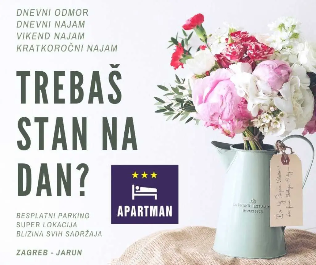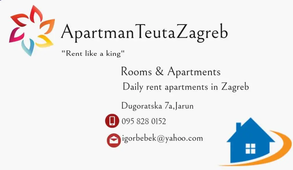 Denný prenájom bytov v Záhrebe - Denný prenájom bytu v meste Záhreb. Byt TEUTA na okraji mesta Jarun pri jazere s 2 spálňami + jedáleň + kuchyňa + WC. Veľmi útulný a pekný byt je veľmi obľúbený pre mladých ľudí, cestujúcich, podnikateľov a rodiny. Je vhodný pre 5 osôb. Špeciálne zľavy na viac ako 4 dni. Parkovanie je bezplatné na ulici. Zdarma wi-fi (super rýchly), tv / sat tv, klimatizácia / ústredné kúrenie. „PRENÁJOM MÁ RÁD“ - TEUTA ZAGREB. SÚKROMNÉ UBYTOVANIE V ZAGREB.