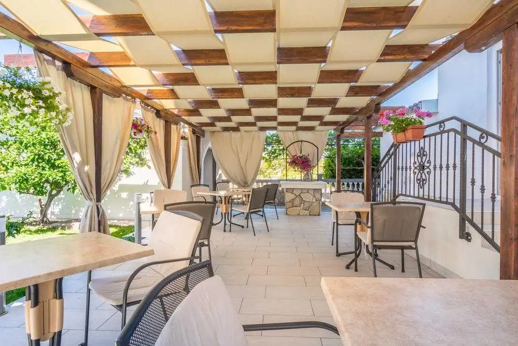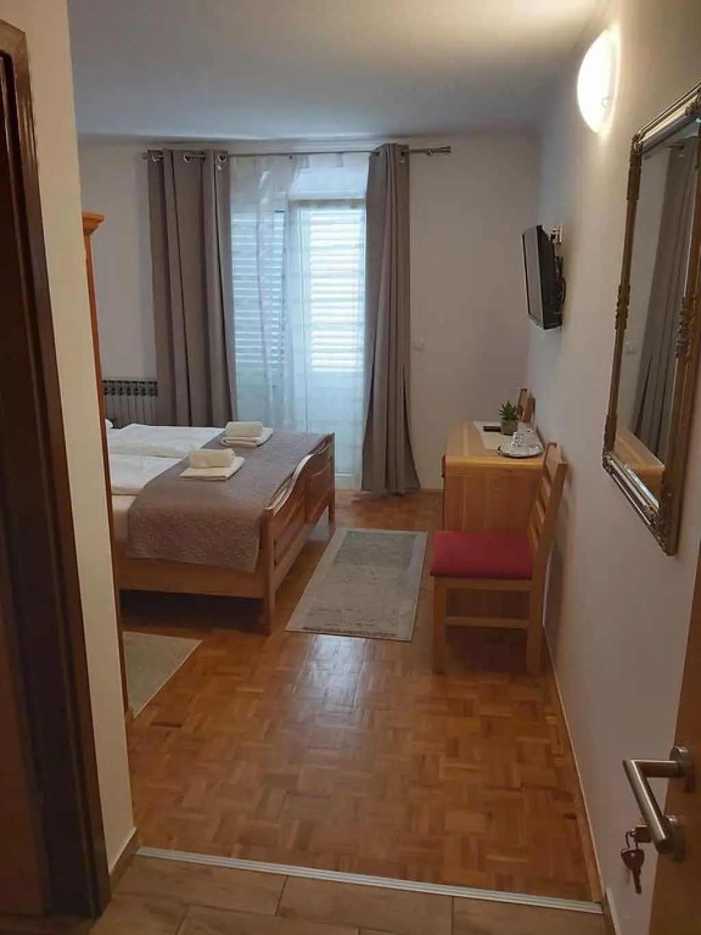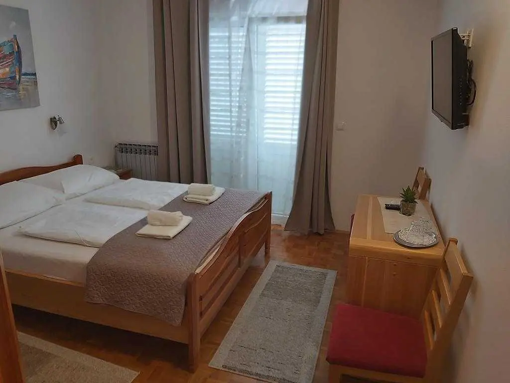 Naše zariadenie sa nachádza v pokojnej časti mesta Biograd. Rodinný dom má 6 dvojposteľových izieb. Všetky izby sú vybavené rustikálnym nábytkom. Každá izba má balkón, kúpeľňa, WC, LCD TV Smart TV, všetky izby sú klimatizované. Návštevníci môžu očakávať uteráky, posteľná bielizeň, voľný upratovanie, parkovanie zdarma v prednej časti budovy a voľný prístup k internetu v celom objekte. Vnútri budovy je veľká jedáleň, kde raňajky formou bufetu. Raňajky a poplatky sú zahrnuté. V prednej časti jedálne je veľká terasa s dodatočným priestorom na posedenie, kde si hostia môžu tráviť čas. Maximálny počet osôb v dome 13 Jeden z izieb je tretie posteľ a tretie lôžko je 12 € Počas letných mesiacov, mesto usporiadalo rad kulinárskych, kultúrnych a zábavných podujatí. Neďaleko mesta sú početné národné parky a prírodné parky, ako je jazero Vrana, Kornati, Paklenica a miest Zadar a Šibenik s ďalšími atrakciami. Registračný poplatok je po celý deň a check-out je do 10:00 hodín.