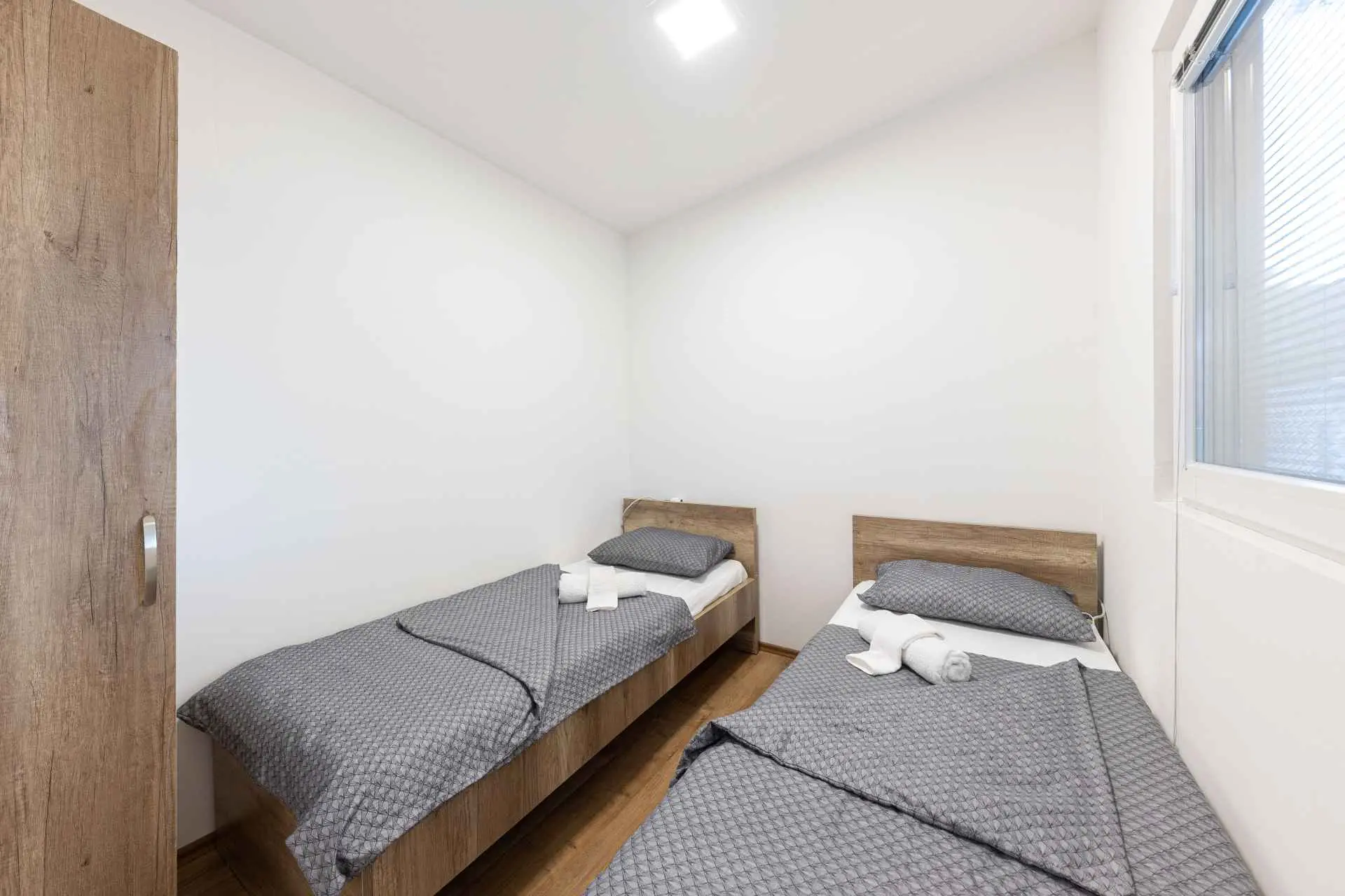 Mobilné domy Amfora sa nachádzajú v Donji Karin, na krásnom mieste, len 200 metrov od piesočnatej a kamienkovej pláže. Všetky mobilné domy sú klimatizované a ponúkajú priestranné patio vhodné na vonkajšie stolovanie. Súčasťou ubytovacích jednotiek je plne vybavená kuchyňa a jedáleň. Medzi domami je detské ihrisko. Na recepcii je k dispozícii požičovňa áut a bicyklov a služby práčovne. Anketa je otvorená počas sezóny s reštauráciou.