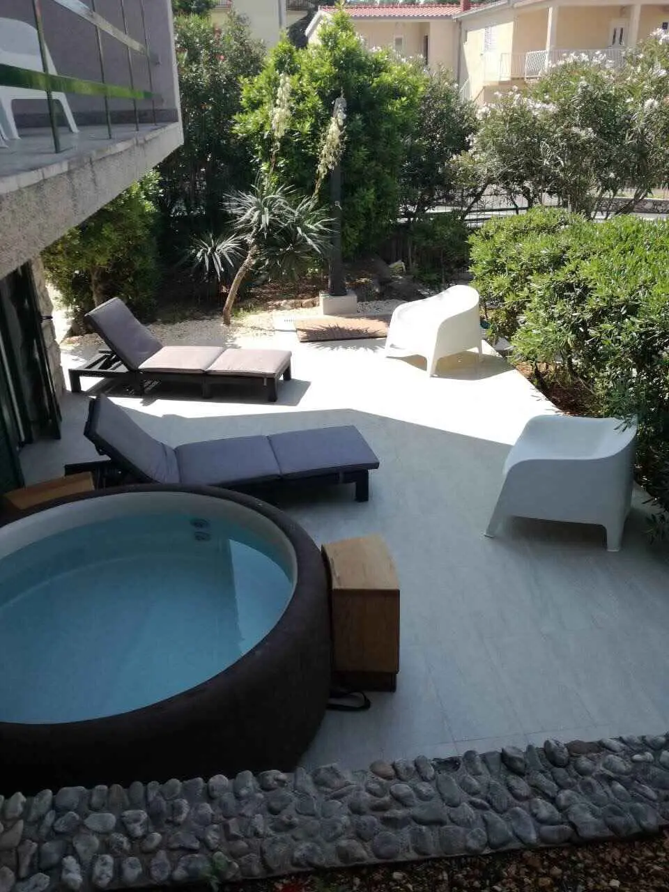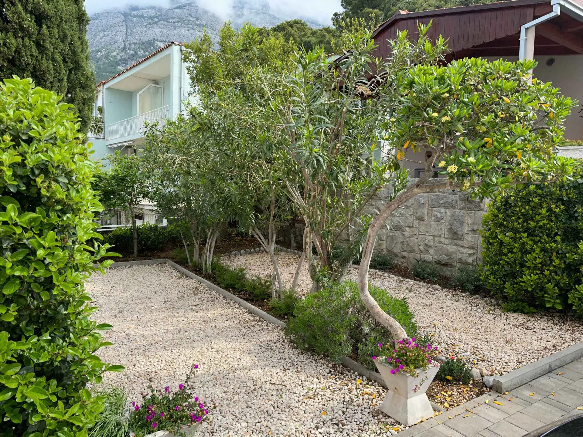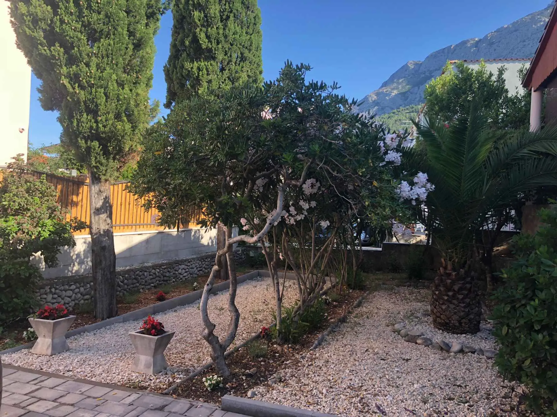 Vila Bandić sa nachádza v bezprostrednej blízkosti hlavnej pláže Baška Voda, iba 100 metrov od mora a 350 metrov od centra mesta Baška Voda. Vila má 3 spálne a obývačku prepojenú s modernou kuchyňou. Spodná spálňa má samostatnú kúpeľňu s WC. Dve horné spálne majú ďalšiu spoločnú kúpeľňu s WC a ďalšie samostatné WC. Z obývačky sa vychádza na veľkú krytú terasu, kde sa nachádza stôl pre 8 osôb a elektrický gril. Z hlavnej terasy môžete zísť na spodnú terasu, kde sa nachádza priestor na opaľovanie s mäkkou vaňou a vonkajšou solárnou sprchou. Na druhej strane domu je hlavný vchod do domu s malou terasou a stolom so 4 stoličkami. Parkovanie je zabezpečené až pre 4 autá. Celý dom je obklopený stredomorskými rastlinami a je rozpoznateľný podľa oleandrov.