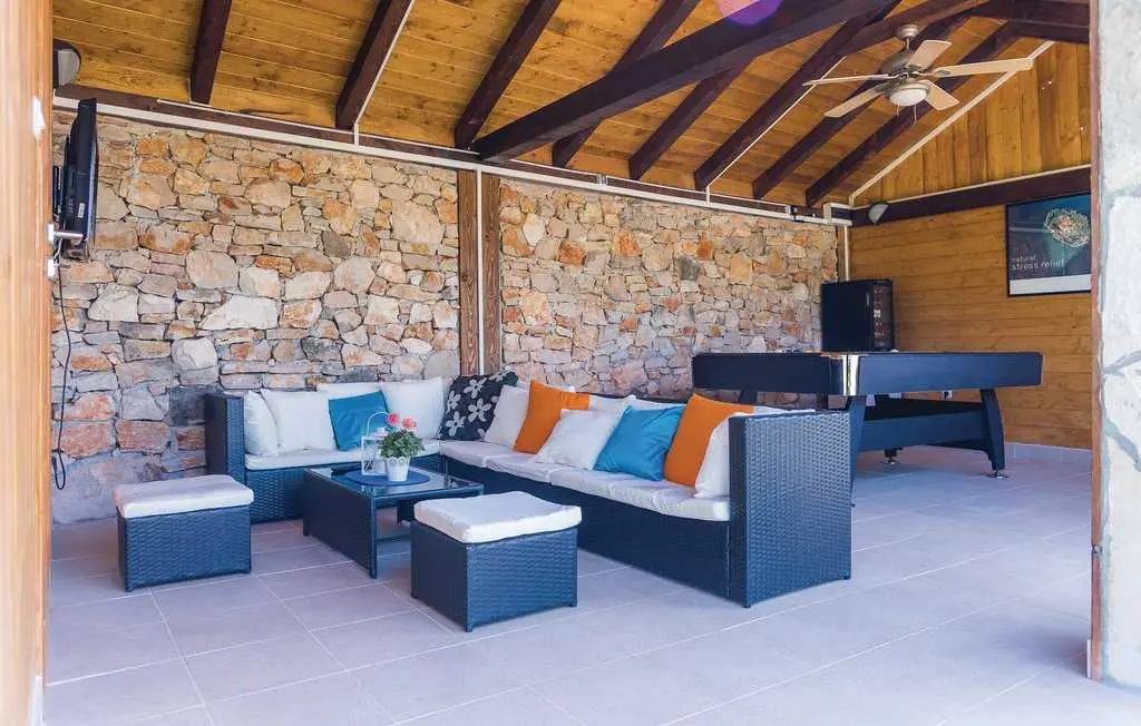 Táto krásna budova vám poskytne 5 000 m² nádhernej prírody, vidiecke idyly a dostatok komfortu. Na vonkajšom krbe vyskúšajte tradičné a chutné špeciality z rýb a mäsa. Je obklopený väčšinou zelene a prírody a je tým pravým miestom na oddych a relaxáciu. , vírivka, biliard, šípky alebo odpočívanie na čerstvom vzduchu s TV a minibarom vo vonkajšom bare.