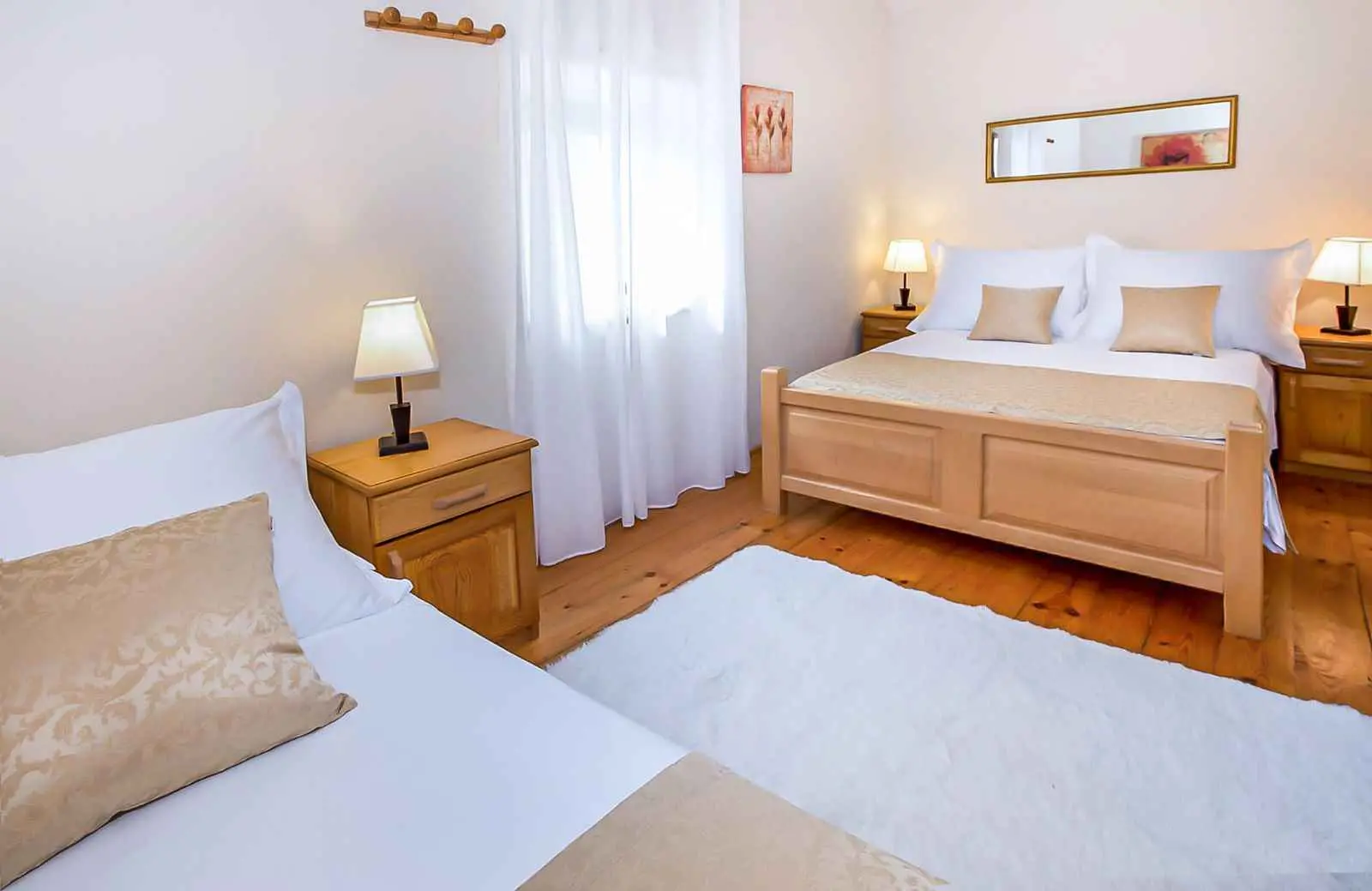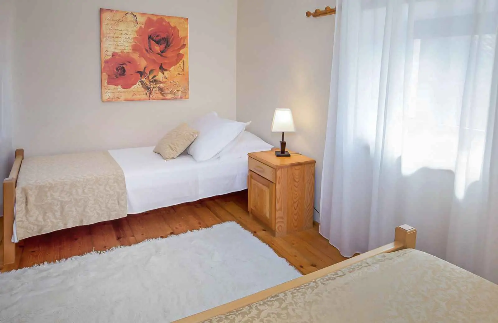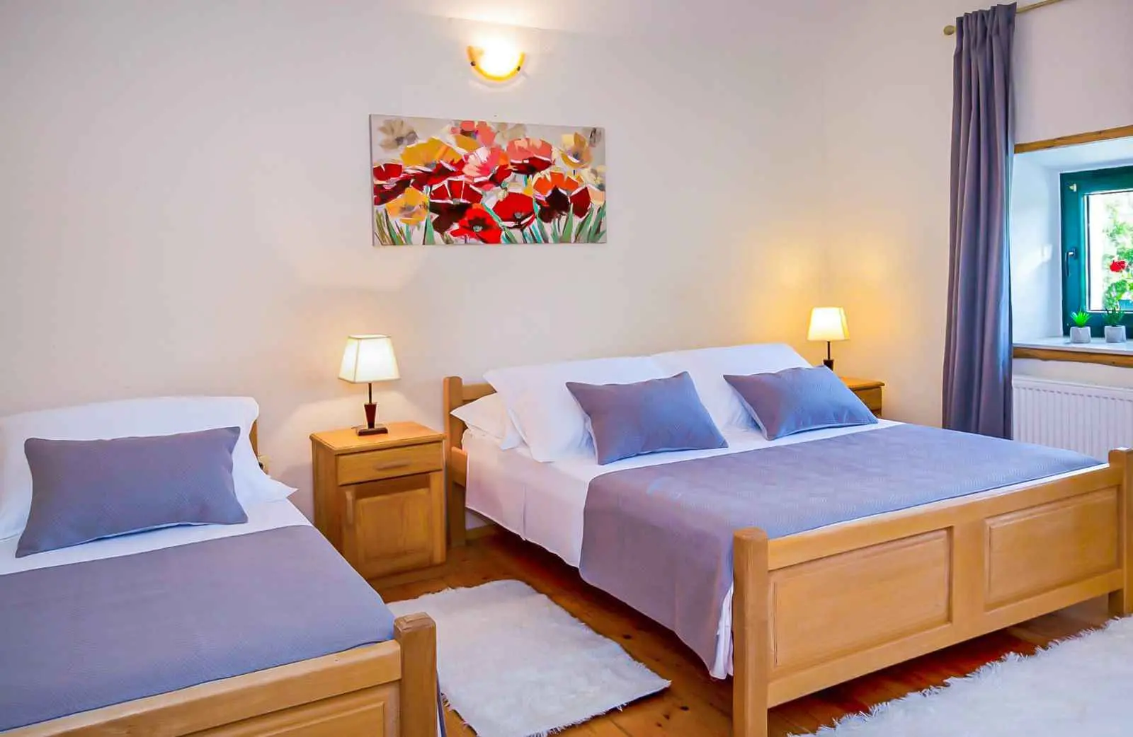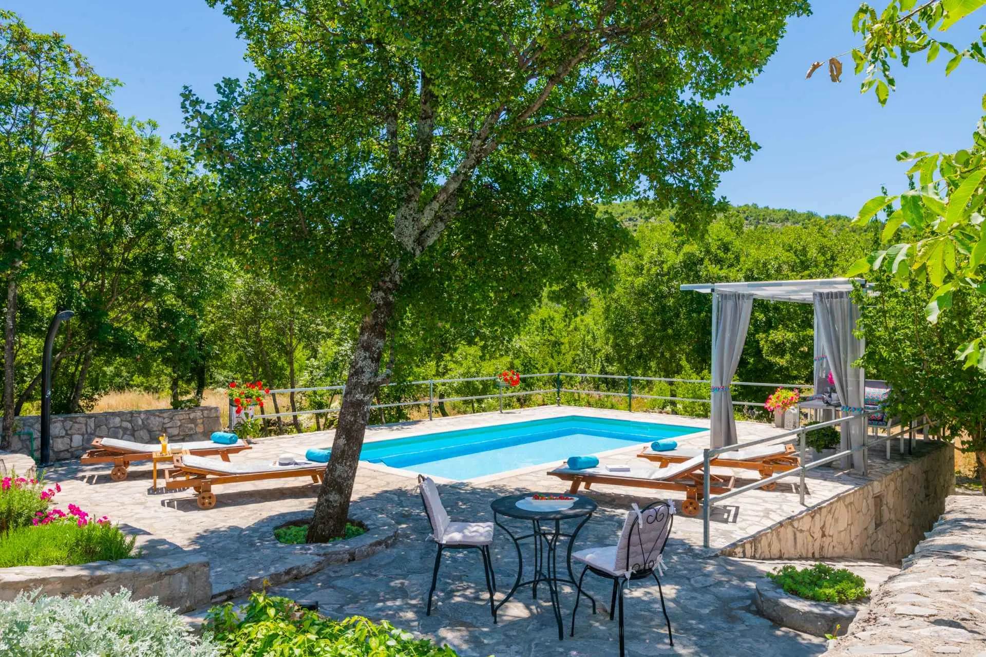 DOVOLENKA V PERFEKTNOM POKOJI A PRÍRODE! Vila sa nachádza v Zmijavci, neďaleko Makarskej riviéry. Rustikálna vila s bazénom sa nachádza na pokojnom mieste v Dalmácii a ponúka Vám relaxačnú dovolenku pri bazéne s výhľadom na nedotknutú prírodu. Nachádza sa na priestrannom súkromnom pozemku 2000 m. Dom pozostáva z prízemia a poschodia. Na prízemí domu sa nachádza kuchyňa, jedáleň a obývačka s 2x WC. Na prvom poschodí sú dve trojlôžkové izby a jedna dvojlôžková izba. Každá spálňa má kúpeľňu a klimatizáciu. Pred domom je dvor obohnaný kamenným múrom a kovovým plotom so záhradným nábytkom a hojdačkou. Vedľa hlavnej budovy sa nachádza menší kamenný dom s vnútorným priestorom na grilovanie, ďalšou kuchyňou a toaletou s práčkou. Vedľa miesta na grilovanie sa nachádza bazén s ležadlami a detskými hračkami. Pred domom je záhrada s bio zeleninou a ovocím, ktorú môžu hostia využívať. Najväčšiu radosť deťom robia domáce zvieratká, ktoré sú blízko domu v uzavretom priestore. Aktivity v okolí: Ak túžite po aktívnej dovolenke, odporúčame vám prejsť sa po neďalekých viniciach a olivových hájoch a pozrieť si výrobu miestneho vína a olivového oleja. Neďaleko je vyhliadka, ktorá ponúka výhľad na Imotsko polje, rieku Vrljika, Modré a Crvene jazero. Môžete si oddýchnuť a užiť si tradičnú hru boccia. Môžeme pre vás zorganizovať aj jednodňové výlety (Imotski, Mostar, Makarska, prírodný park Biokovo), rafting, zipline, canyoning, jazdu na koni... Alebo len tak relaxovať pri bazéne na slnku, vychutnávať si chuť miestnych pochúťok a vôňa prírody. Ak chcete pokoj, scenériu, čerstvý vzduch a chorvátske špeciality, pozývame vás stráviť dovolenku v našej zelenej oáze. Ubytovaní budete v priestrannej a nadštandardne zariadenej vile s bazénom. Budete ďaleko od ľudí, dopravy a hluku. Obklopený len prírodou, lesmi a liečivými rastlinami. Pochutíte si aj na našom domácom jedle. Poď. O radosť sa s vami radi podelíme. Mohlo by vás zaujímať Objavte Imotski | Navštívte Imota Skywalk | Prírodný park Biokovo (pp-biokovo.hr) Rafting Cetina (rafting-cetina.com) Ranč Medvidović (ranchmedvidovich.com) Turistické združenie mesta Split (visitsplit.com)
