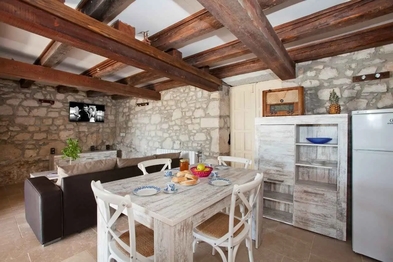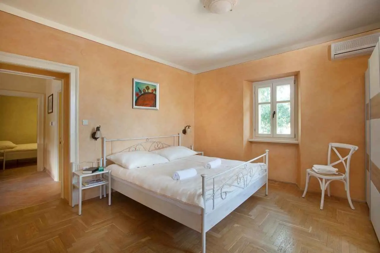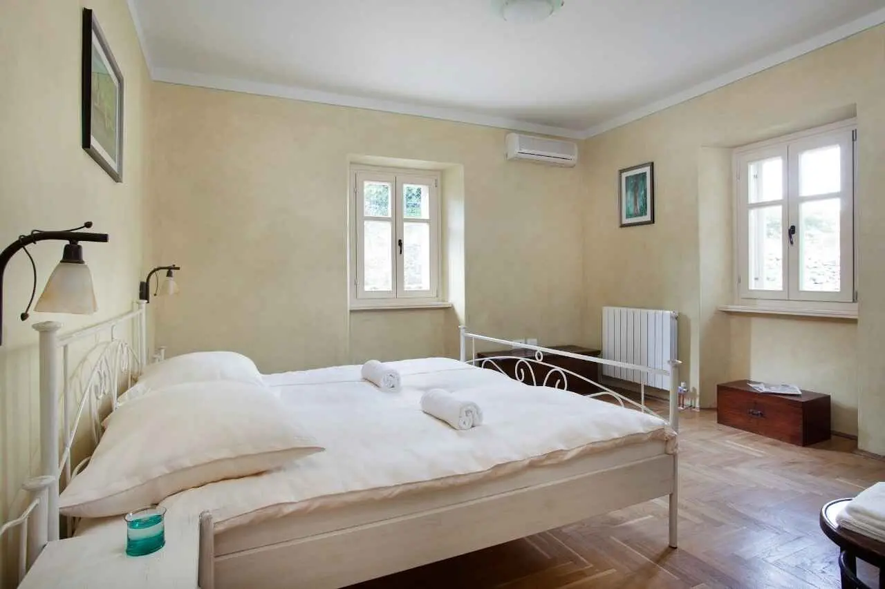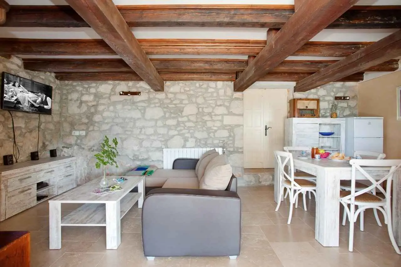 Táto krásna vila s bazénom bola postavená v roku 1902 v kameni a kompletne zrekonštruovaná v roku 2013 v súlade s prírodným prostredím, v ktorom sa nachádza. Na rekonštrukciu boli použité iba prírodné materiály typické pre danú oblasť, z ktorej vyniká najmä kameň Kanfanar, s ktorým je dláždených viac ako 300 m2 záhrady. Vila je plne prispôsobená modernému životnému štýlu a jej kúzlo sú prvkami rustikálnej architektúry, pôvodného štýlu fasády s prírodnými materiálmi a zemitými farbami a kamenným prameňom tradičnej istrijskej cisterny z roku 1880. Vila pozostáva z dvoch častí so samostatnými vchodmi. V hornej časti sa nachádza priestranný apartmán s tromi spálňami, kuchyňou, kúpeľňou a terasou so záhradným nábytkom. Na prízemí sa nachádza apartmán z kameňa s tradičným krbom a terasou so záhradným nábytkom, pred ktorým sa nachádza bazén a niektoré ležadlá. Vila sa nachádza v malej dedine len s niekoľkými usadenými domami. Okolie sa rozprestiera na ploche 7000 metrov štvorcových zelenej záhrady, ktorá je ideálna na relaxáciu a pokoj a ticho a úplné súkromie. Vzdialenosť k najbližšiemu supermarketu je 4 km, prvá reštaurácia je 1,5 km (možné stravovanie po dohode), prvé pláže sú vzdialené 3 km a vzdialenosť k najkrajším plážam Istrie v Rabaci je 10 km. Vila sa nachádza len hodinu jazdy od všetkých prírodných a kultúrnych pamiatok Istrie. S rustikálnou stavbou domu a osobitnou pozornosťou venovanou pravidlám Feng Shui, dom a záhrada sú vybavené zariadeniami v súlade s moderným životným štýlom a potrebami a plne pokryté signálom Wi-Fi.