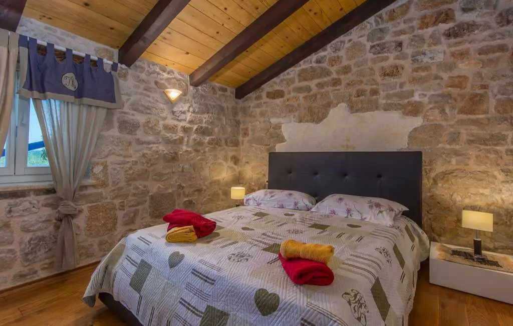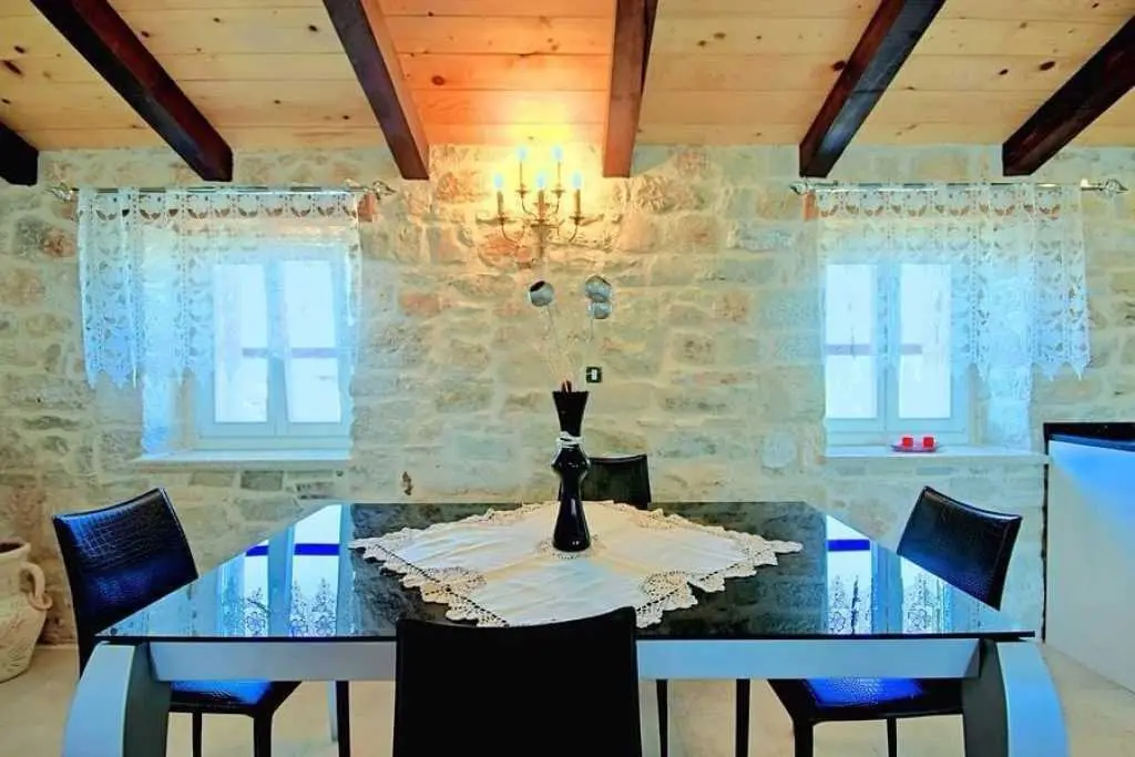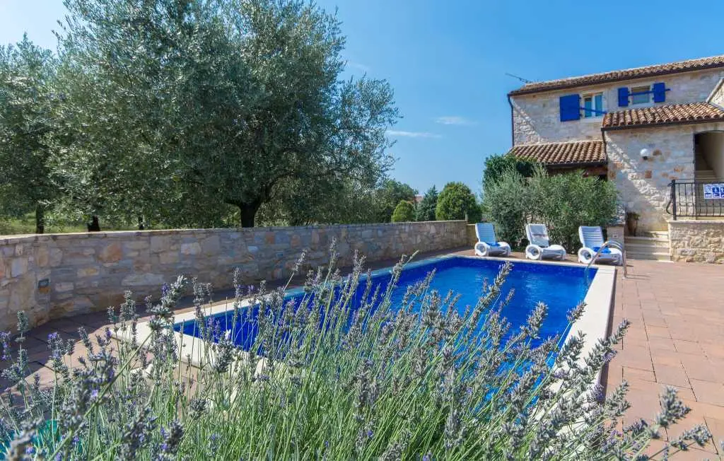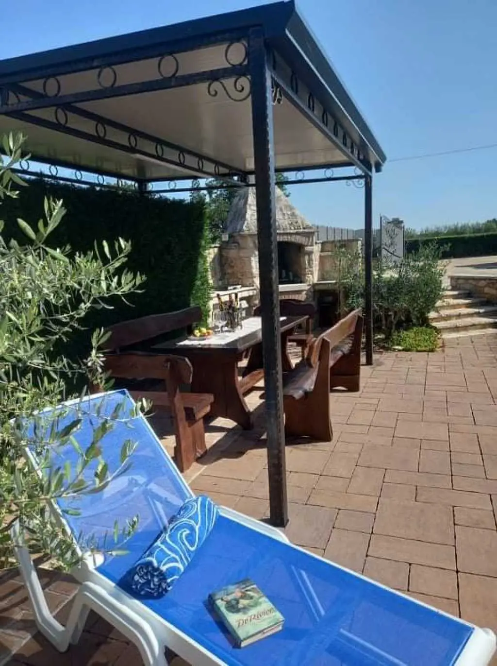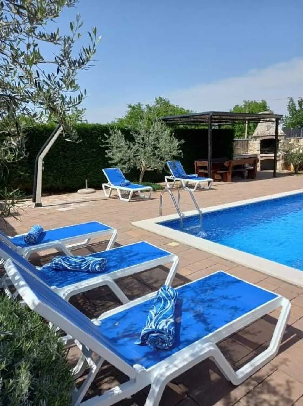 Dom pozostáva z 3 apartmánov, maximálne pre 7 osôb. Prenajíma sa ako jedna bytová jednotka. Pre jednu rodinu alebo skupinu až 7 osôb. V záhrade je bazén s plážou plne vybavený záhradným nábytkom a ležadlami a kamenným grilom. Dom je obklopený olivovými hájmi a umožňuje úplné súkromie. Nachádza sa v tichej lokalite s vlastným parkoviskom. Rezervácie len cez víkendy (sobota/nedeľa až sobota/nedeľa). Vitajte!