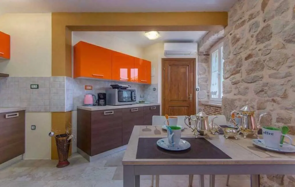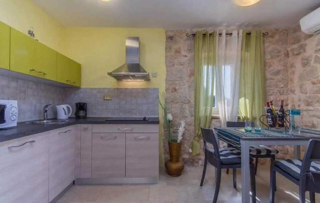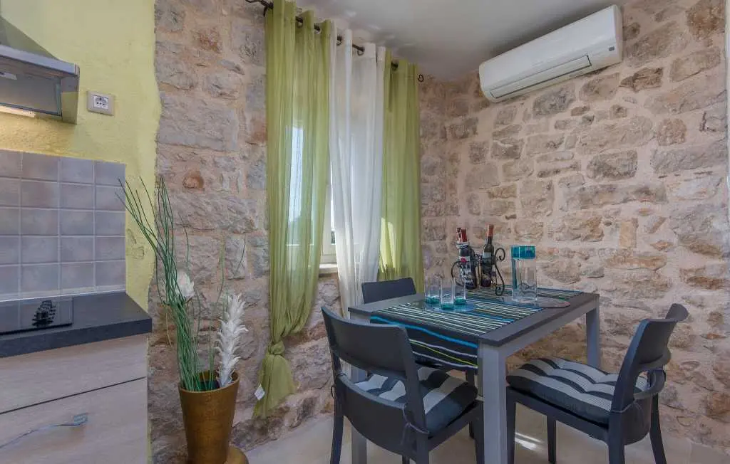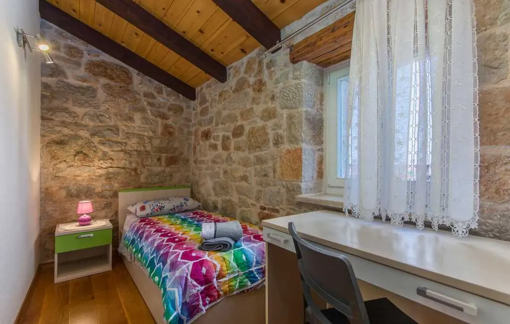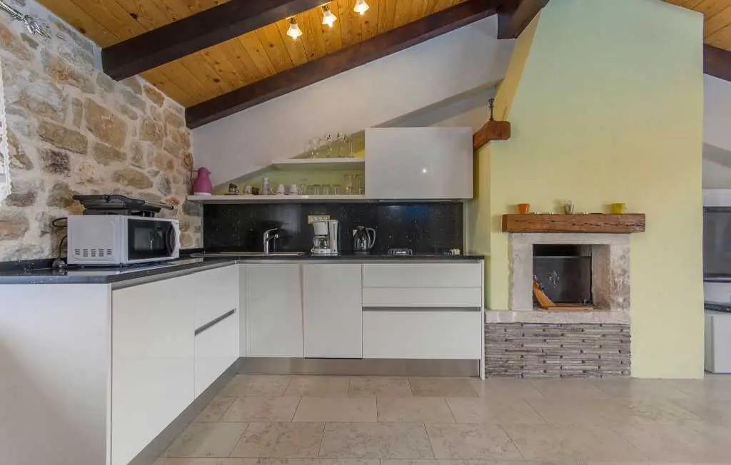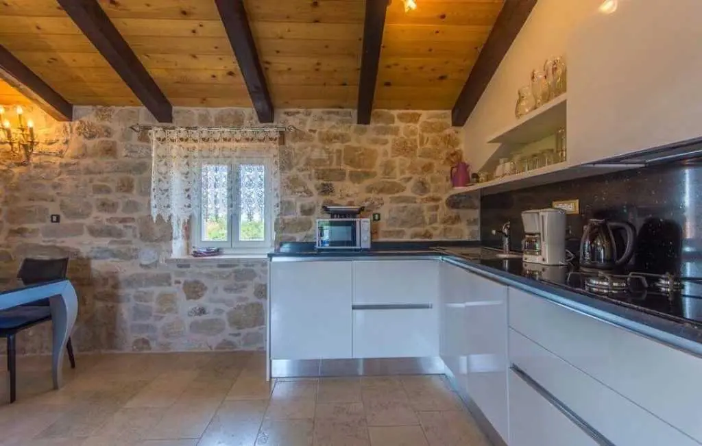 Dom pozostáva z 3 apartmánov, maximálne pre 7 osôb. Prenajíma sa ako jedna bytová jednotka. Pre jednu rodinu alebo skupinu až 7 osôb. V záhrade je bazén s plážou plne vybavený záhradným nábytkom a ležadlami a kamenným grilom. Dom je obklopený olivovými hájmi a umožňuje úplné súkromie. Nachádza sa v tichej lokalite s vlastným parkoviskom. Rezervácie len cez víkendy (sobota/nedeľa až sobota/nedeľa). Vitajte!